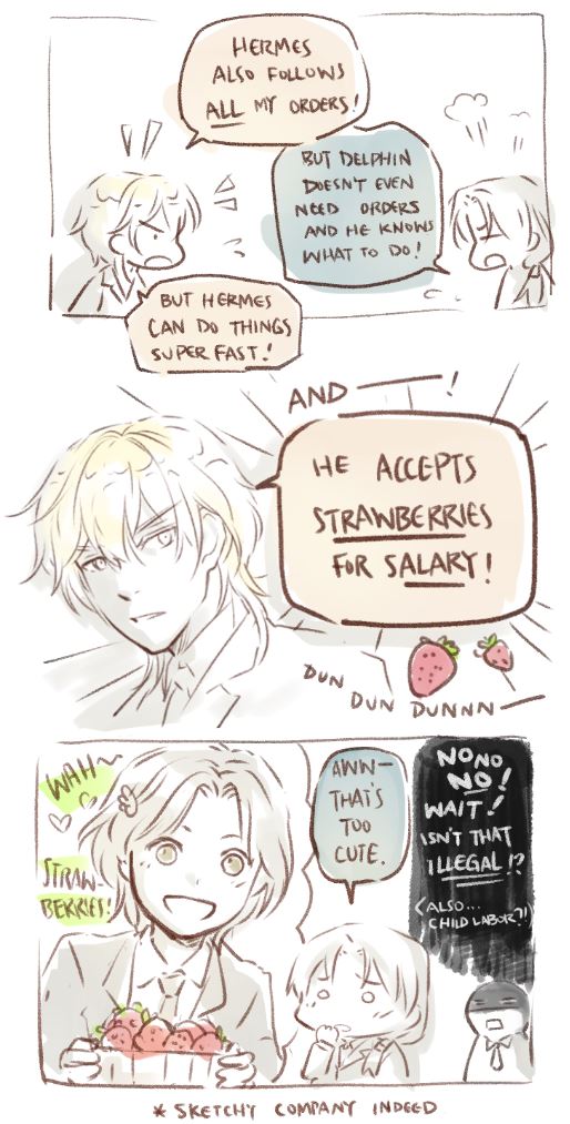 ...Hermes likes strawberries :U *Old doodles of Workplace edition MYth. Update is irregular and continuation is NOT promised XD
