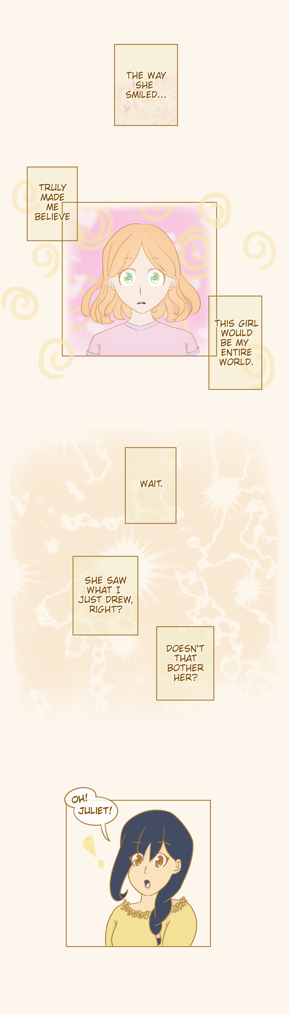 Juliet is one of the school's best athletes and one of the smartest. She's popular and easily gathers a crowd but is completely oblivious to it. Marie is more in love with reading stories than reading math problems but just about all her grades but English are tanking. She usually has Artemis to help her out, but recently felt Artemis becoming colder to her despite being friends since kindergarten.
