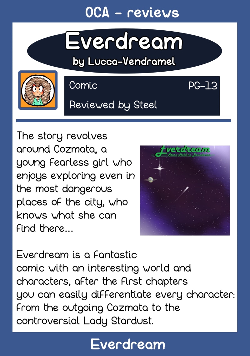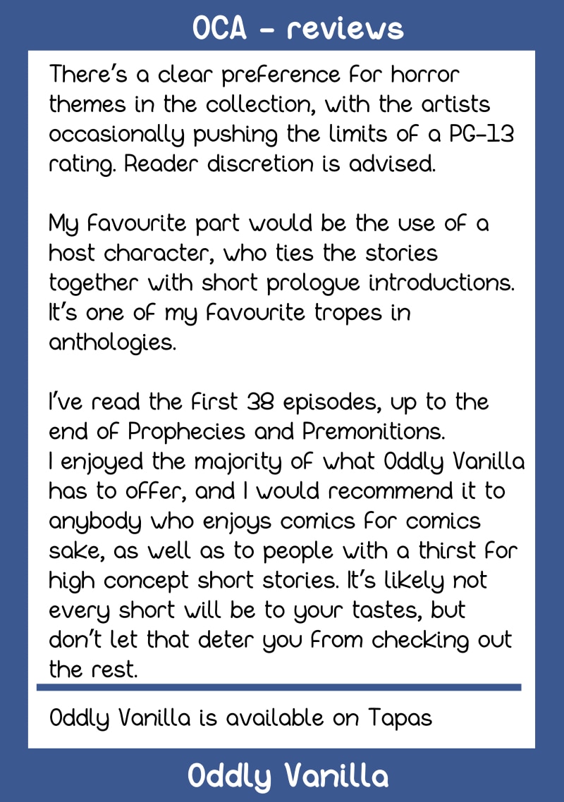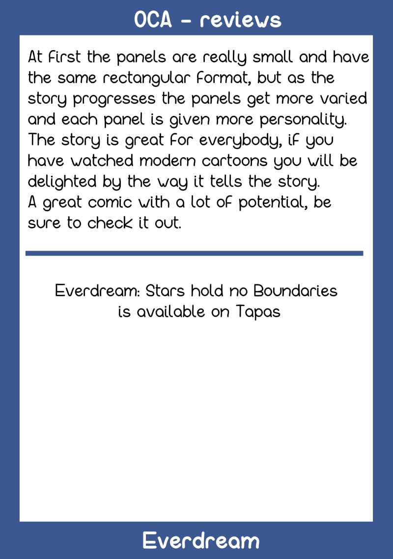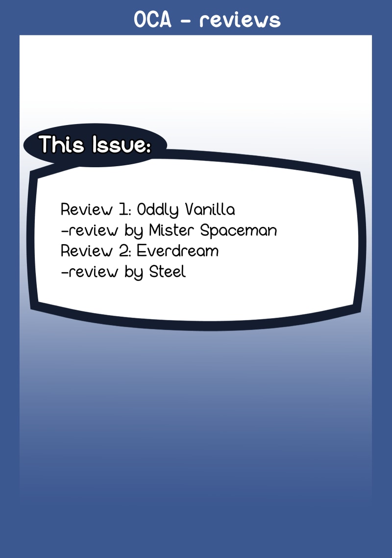 Reviewed items: Oddly Vanilla: https://tapas.io/series/Oddly-Vanilla Everdream: https://tapas.io/series/Everdream-Stars-Hold-no-Boundaries