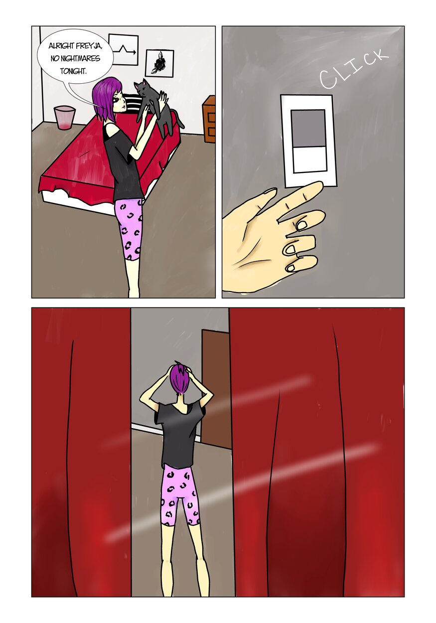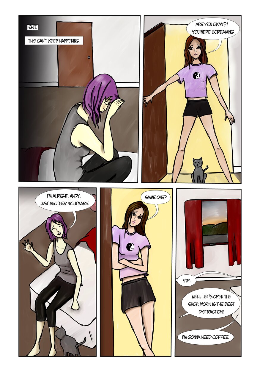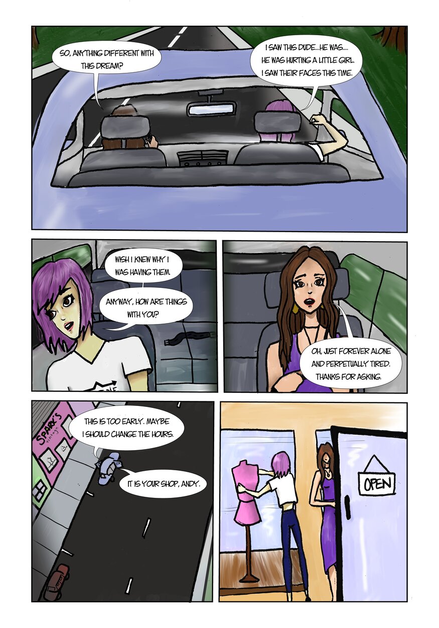 Plot Line is a comic about the main character, Harper, a 25 year old who works in a vintage shop with the owner and roommate, Andy. Harper begins to have nightmares about a man, a little girl, and a house where terrible things are happening. After seeing the same man from her nightmare outside the shop one day, Harper goes into a spiral of trying solve the mystery of the nightmares she's been having. In this dark hole, Harper runs into a mysterious figure who is somehow involved and does not want Harper to get in her way. Harper will soon have to figure out how far she's willing to go to find the truth, no matter how dark it is.
