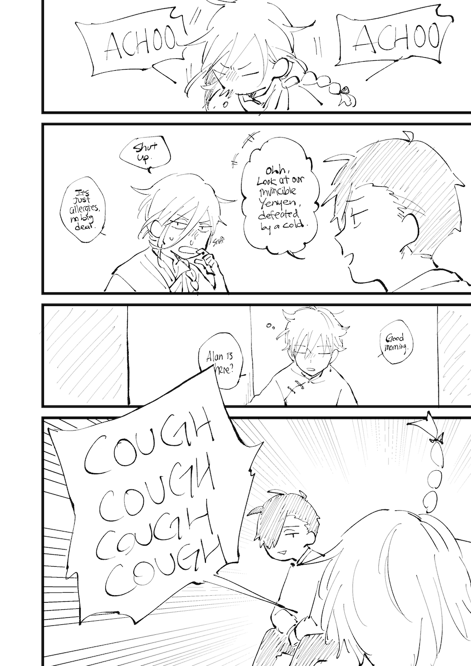 While coming up with the title, I learned that there is no direct translation for 撒嬌, which is loosely "wheedling", "acting vulnerable or cute", "acting spoiled" or "being affectionate". That's the title I wanted to go for.