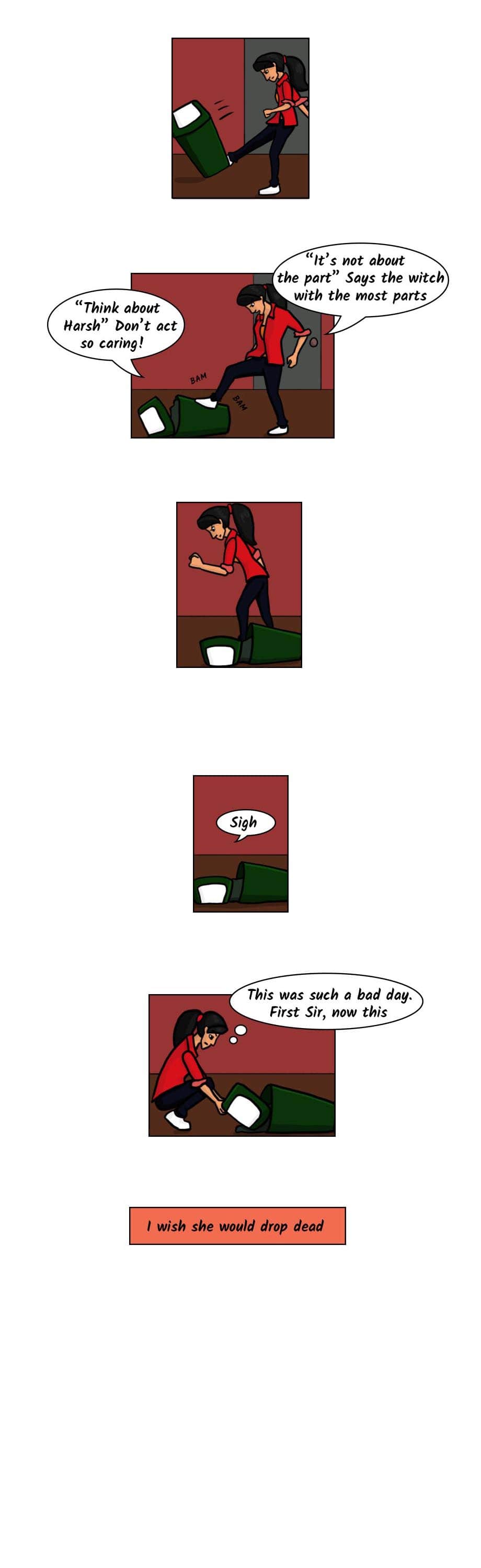 Hey this is my first comic. Basically it's about a college girl who is increasingly frustrated with her life. One day, a person offers a pill to "cure her rage". The next day, someone who had wronged her is found brutally murdered. Could it be her who did this?