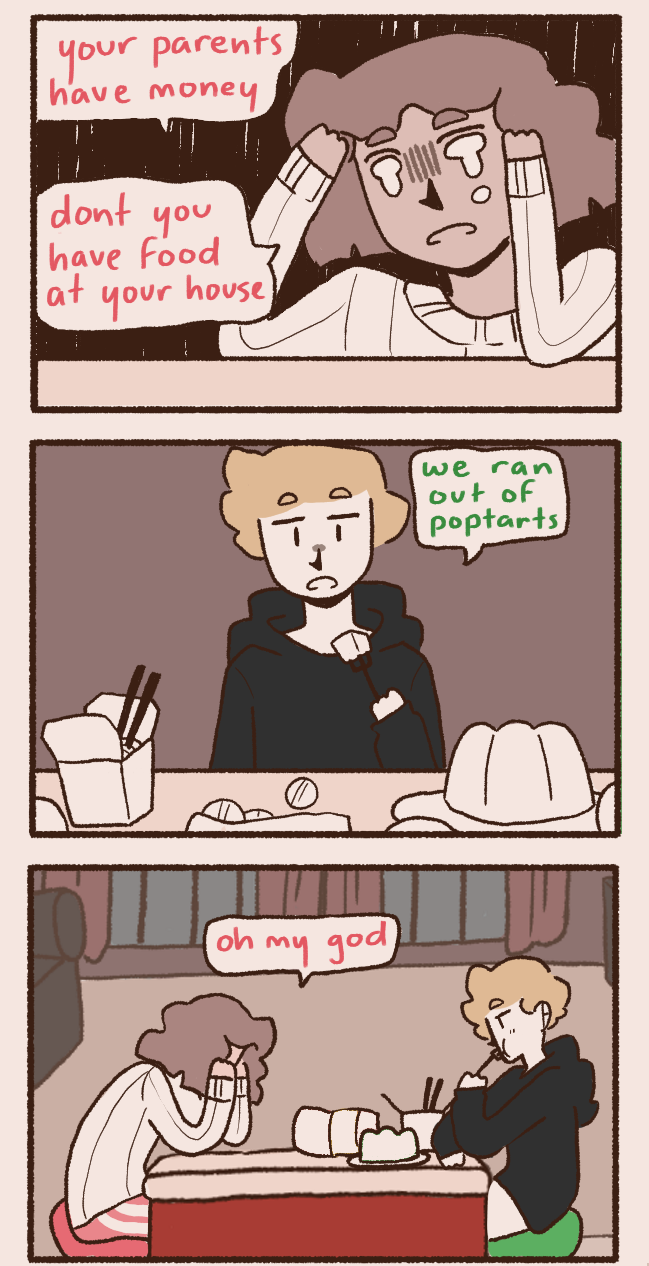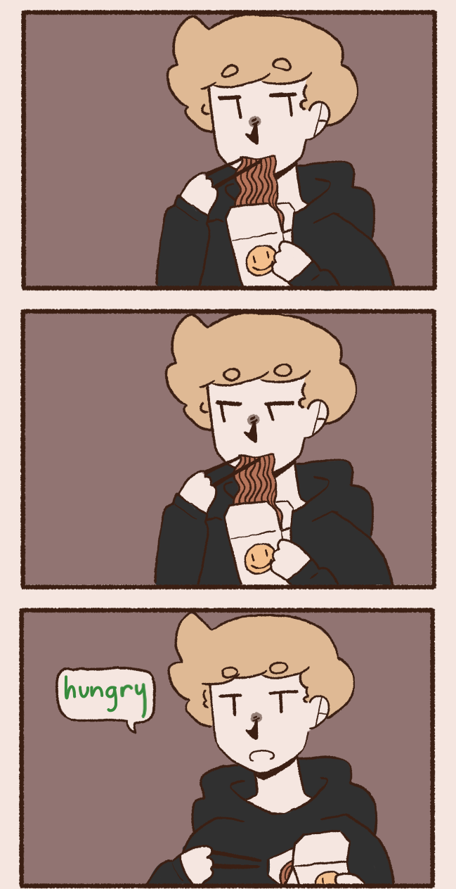 Ramen and Olivia are roommates in New City (i didn't forget york that's just what its called </3). They're two dumb motherfuckers but somehow Ramen gets good grades in university and Olivia always pays the rent on time. They basically only have each other, until two MORE dumb motherfuckers come along. Percy, a dumb little baby with no life experience, and Charles, Olivia's childhood friend and wannabe emo kid that has way too much time on his hands. they do funny stuff please read my comic