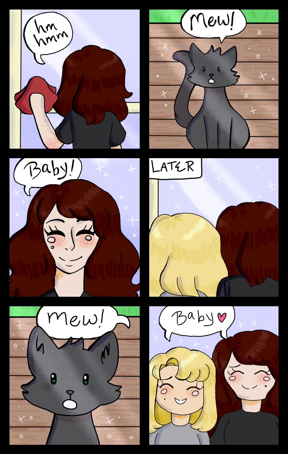 This comic is dedicated to my cat Felix! She passed away recently and I still miss her sometimes. This comic is about the time we were cleaning the windows at my grandpa's house and my cat saw us and didn't understand we were inside haha