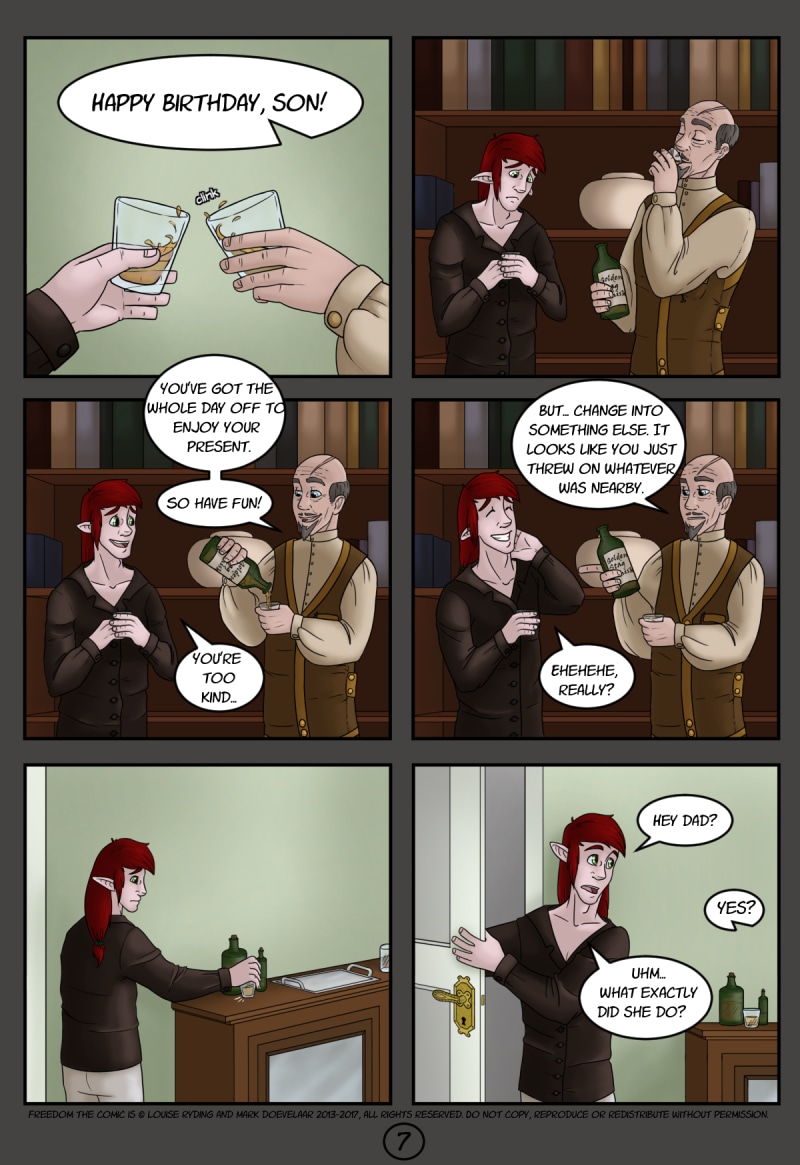 'Freedom' follows two elvari slaves from vastly different backgrounds, fifteen years after the war. Will, a brothel worker with a broken spirit and Thyrian, an adopted ‘son’ raised to think himself above slavery.