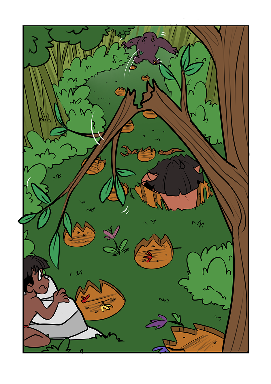 que destrói tudo o que vê pela frente. Tupã ordena que Anhnagá resolva esse problema, e, junto ao Saci Pererê, tentarão fazer que Mapinguari volte