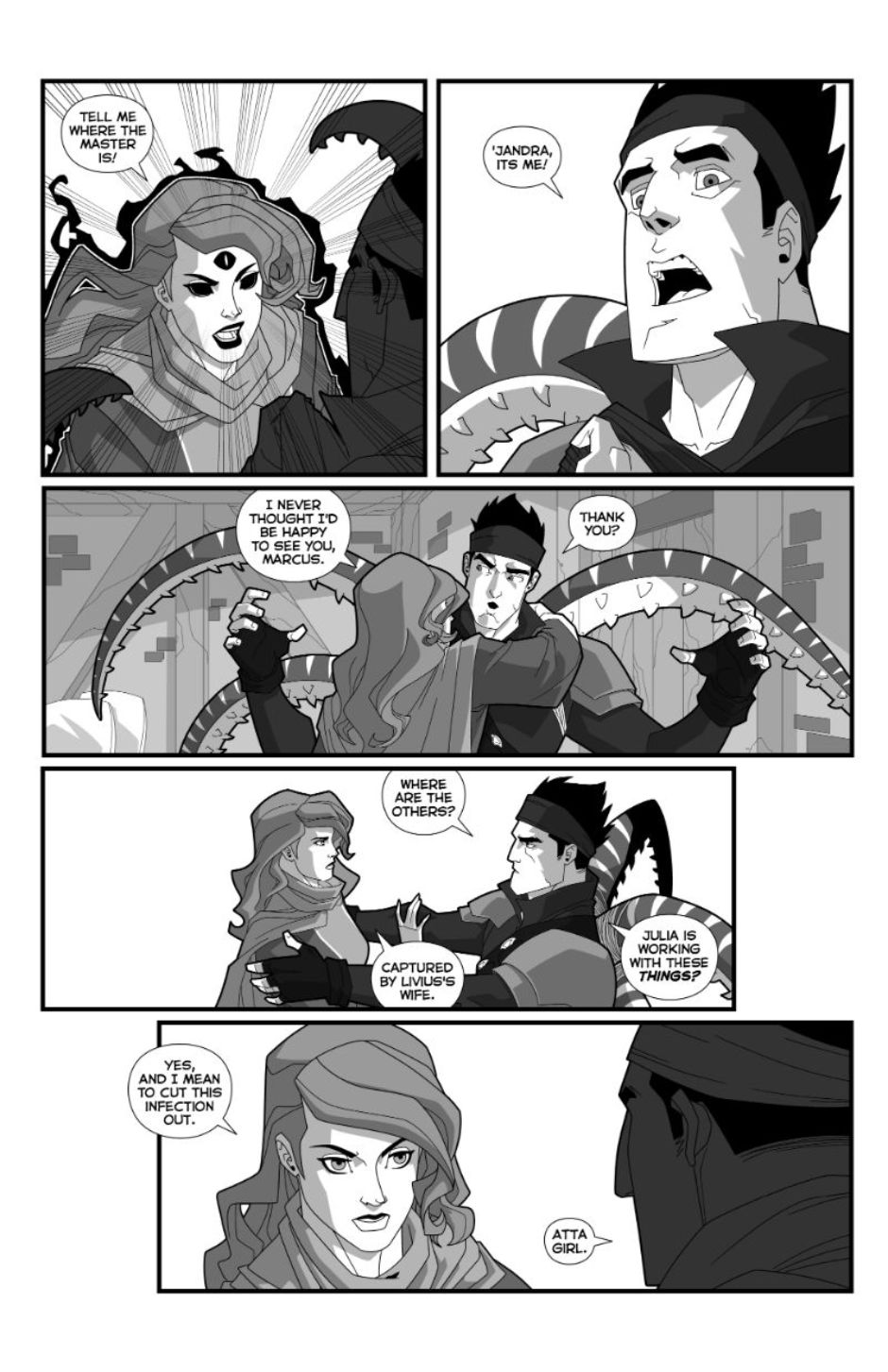 Storm Riders is a monthly black and white webcomic detailing the fantasy adventures of a tight-knit group who look for fame and fortune, and sometimes find both – along with plenty of trouble. This ragtag group of friends and family are willing to do anything – as long as they do it together. Follow their adventures here every month as they look for new challenges, while doing their best to stay one step ahead of rivals, enemies – and even some friends.