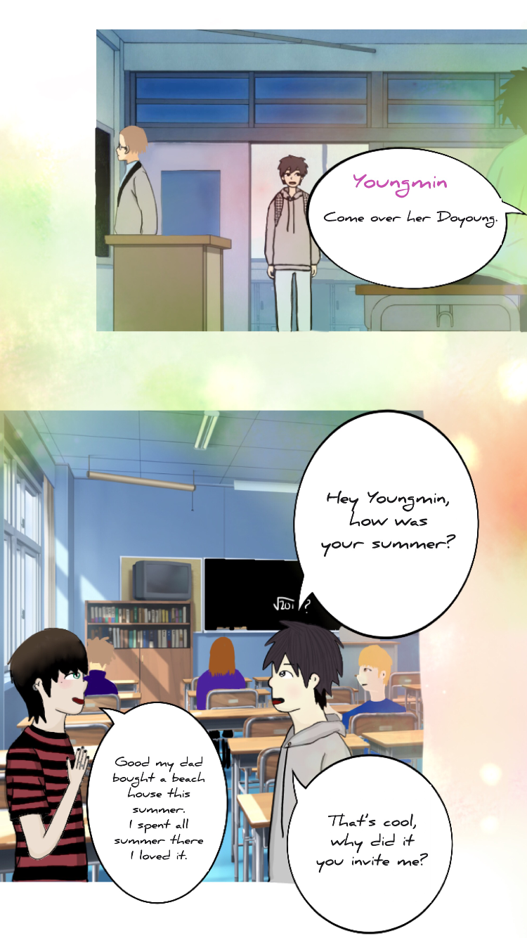 Doyoung is 17 years old and he is the son to a rich company owner. He is struggling to tell his parents he is gay. Taehyuk is 18 years old and he has it ruff. His mother died from cancer when he was little. His father became an alcoholic and is abusive towards him. Doyoung and Taehyuk were friends since middle school but their friendship is about to get interesting.