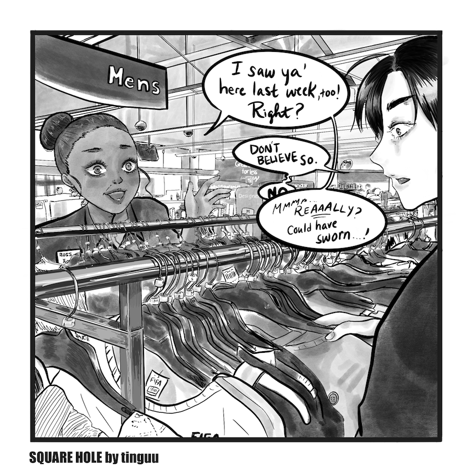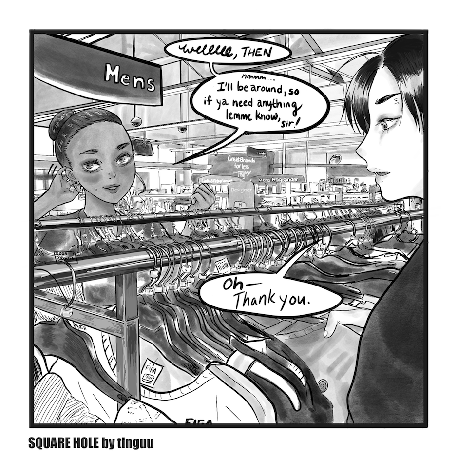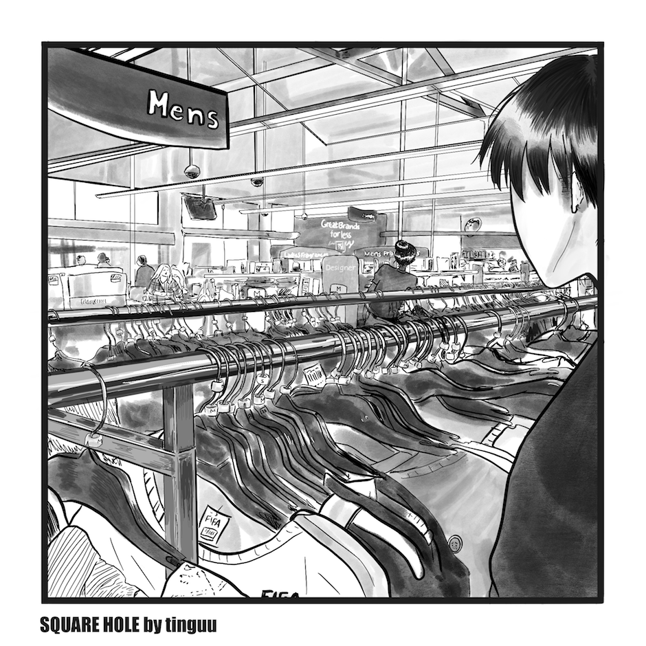 Sometimes inappropriate, violent, and boring. Square Hole is an exploration of identity through "Where's Waldo"-type vignettes of Kel, a queer freelance photographer stumbling through work, dating, and life.