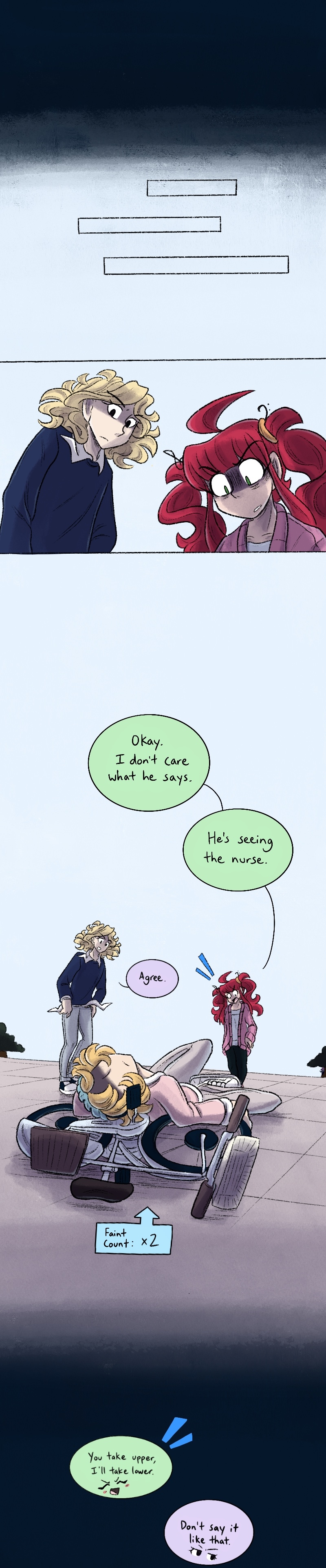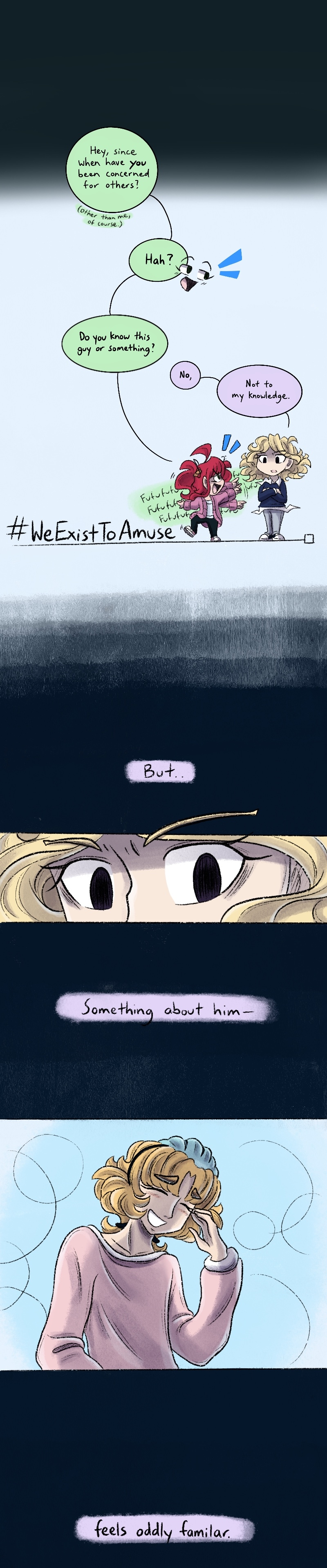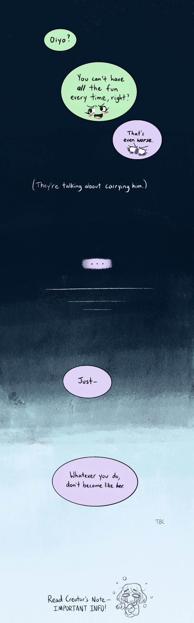 Hi there! How should I put this.. I'm currently working on A LOT of stuff right now, aside from these (temporarily) shortened updates. The biggest being my Short Story entry, which is.. the BIGGEST comic project I've ever worked on, it's connected to this current series, and I've been crunching to finish it on time. I'm also doing a lot of prep work for grad school, thx for your patience. ❤️