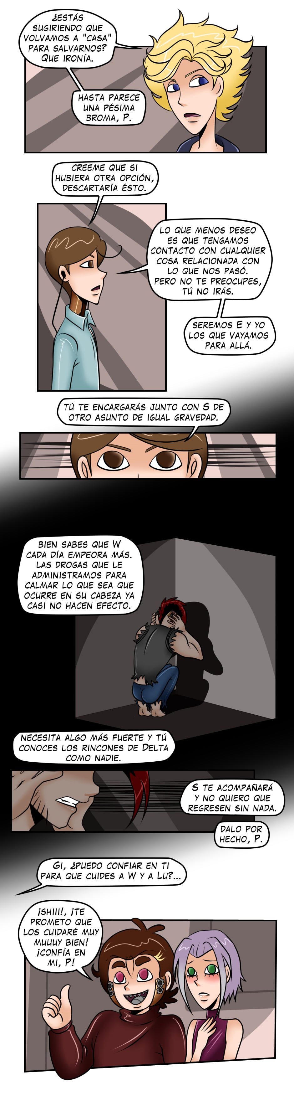 Gran capítulo. Me gustó un montón la forma en que muestran un poco de la personalidad de los personajes. Espero con ansias el próximo capitulo (por cierto, el coloreado es todo hermoso).