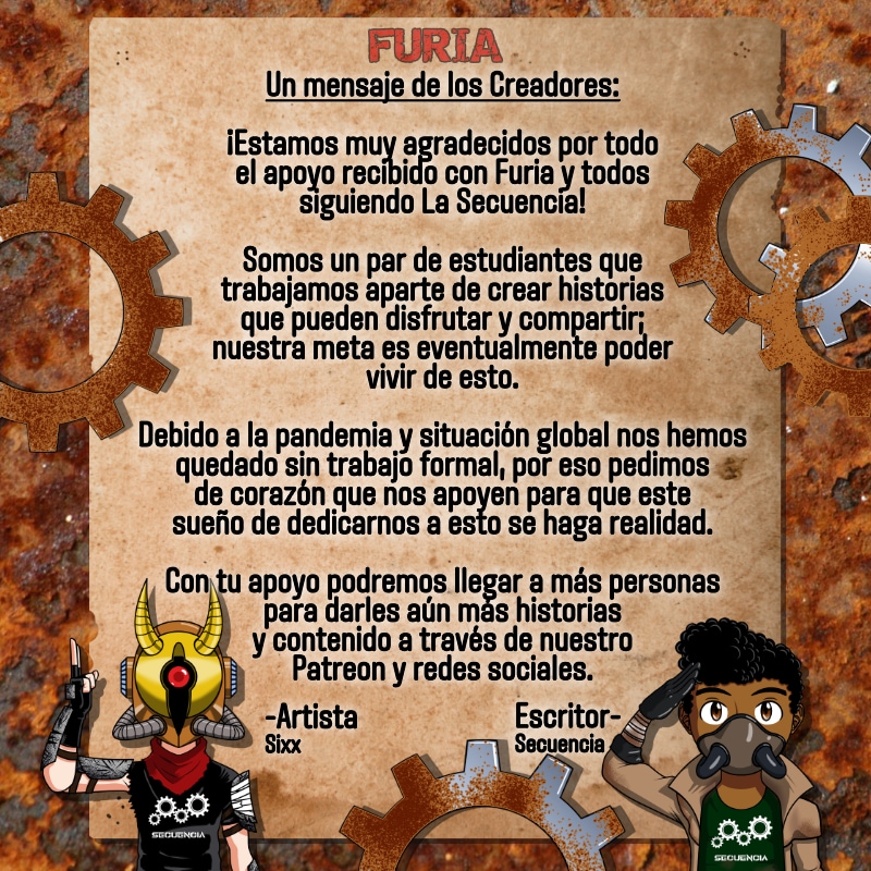 Esto concluye el primer libro de Furia, si quieren verlo completo nos pueden apoyar en Patreon y lo tendrán descargable, además de mucho contenido adicional que seguiremos actualizando.