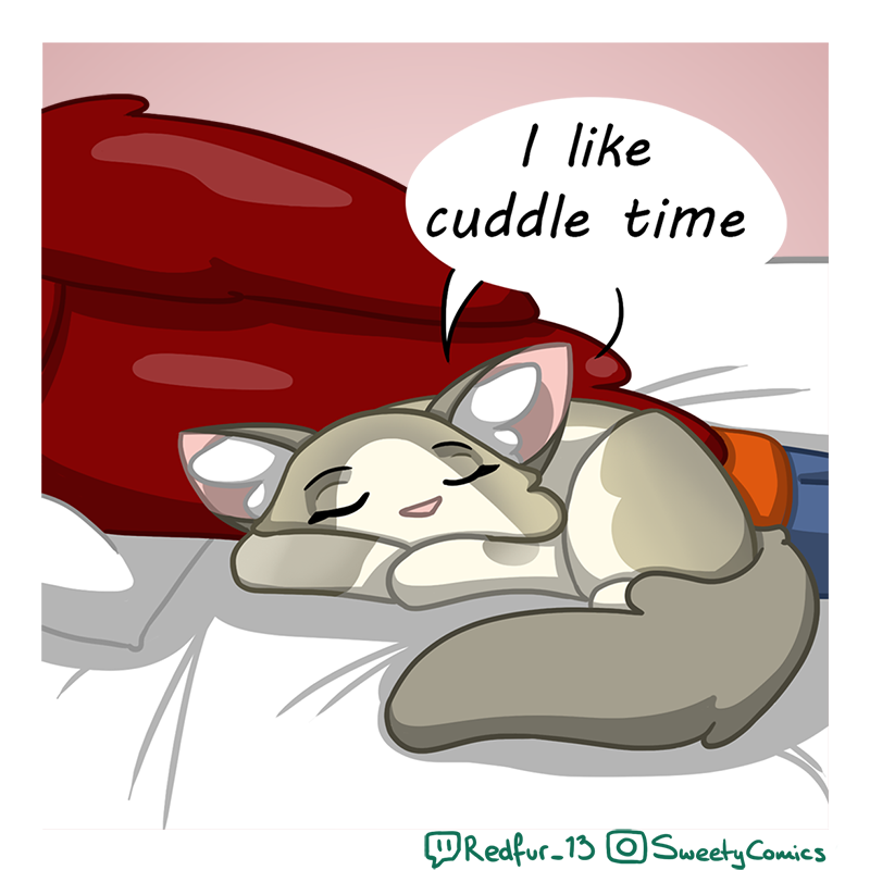 A comic series about my cat Sweety and the shenanigans she gets up to! My name is Red, and I own a young ragdoll cat named Sweety. She had two litters when she was young, and now has a forever home with me. Updates twice weekly! Can also be found on Instagram at Sweetycomics