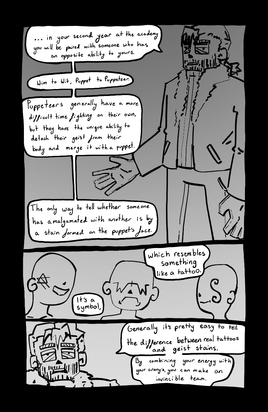 In their second year they get paired up with someone to act as their crony. Together they are called a marionette. This page was just to help explain a small detail in the next few pages.