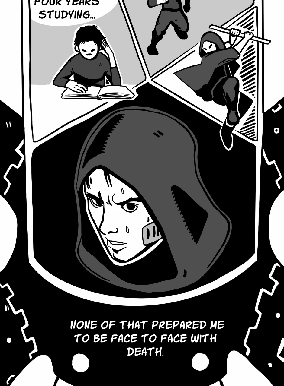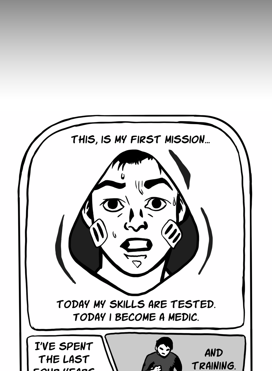 As a former US Navy Corpsman (waaay back in time), it's great to see a Medic as a hero. I also really love the style you're using in creating this. Great job, Doc!