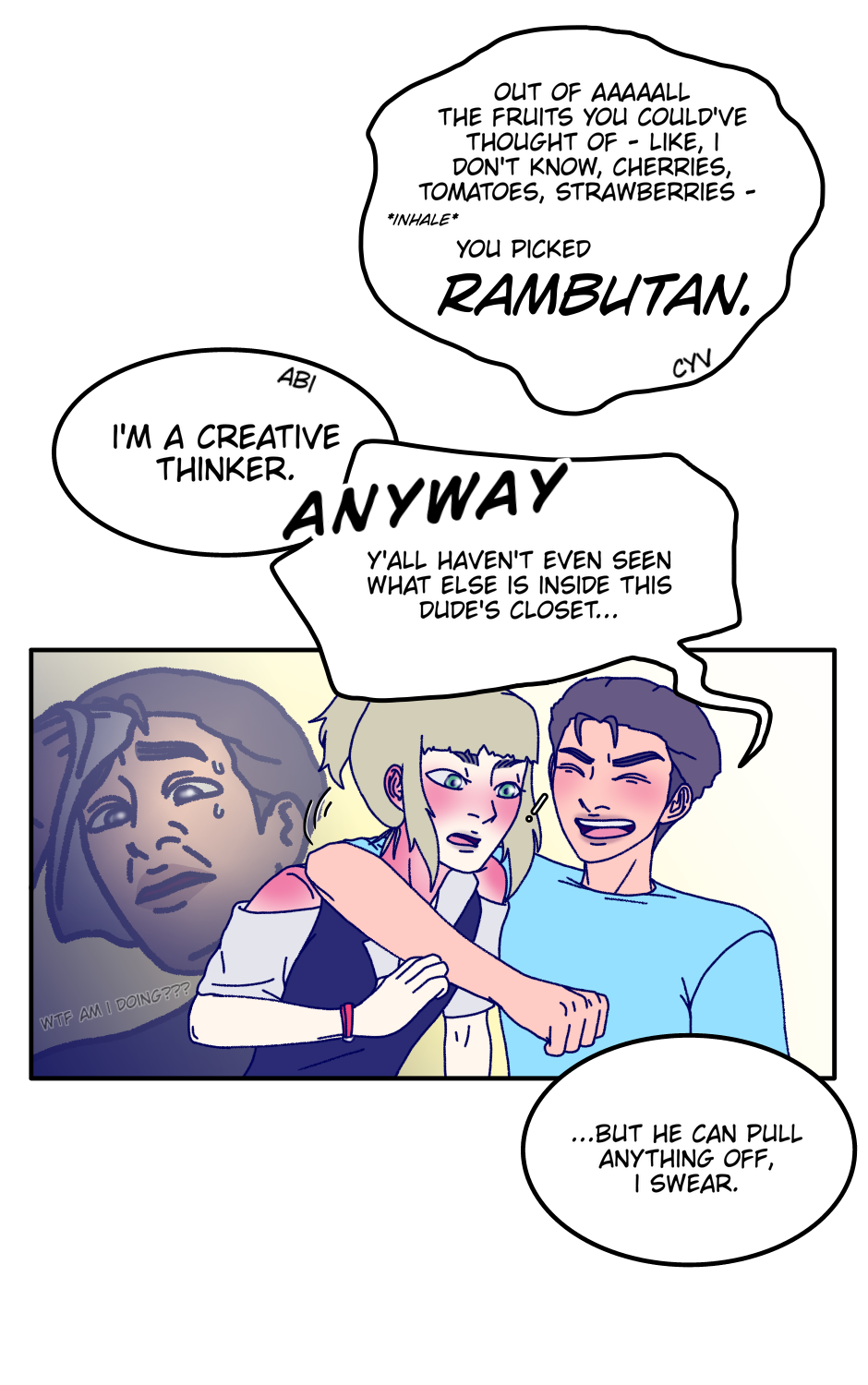 lmao a rambutan, abi is so chaotic i love it