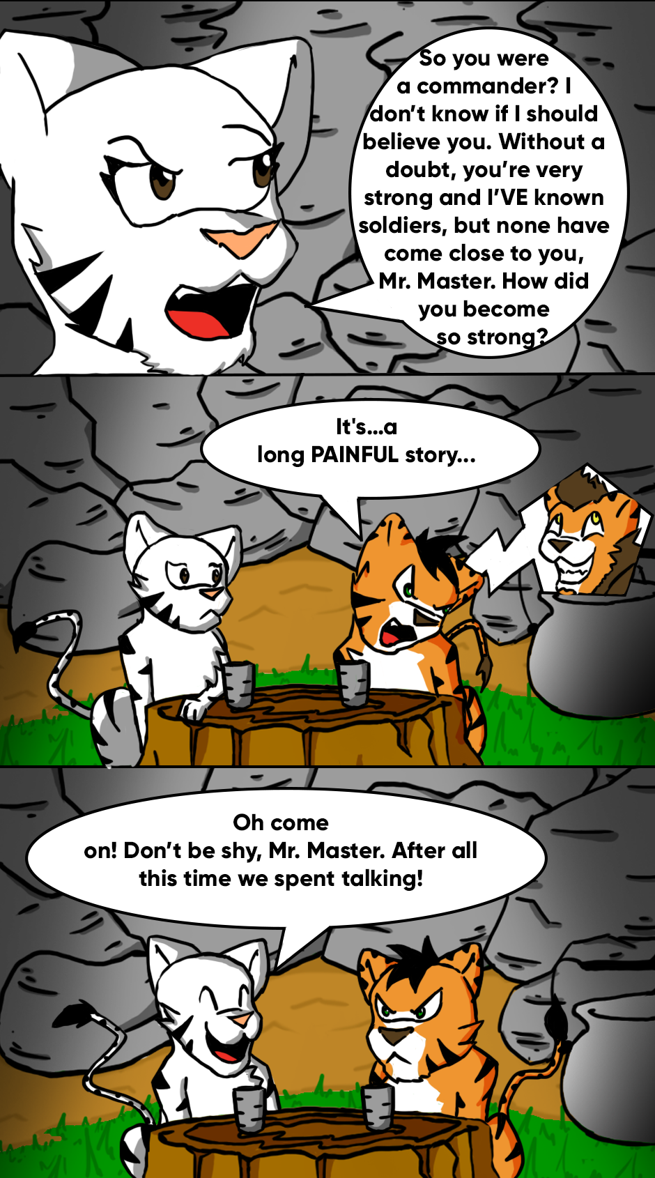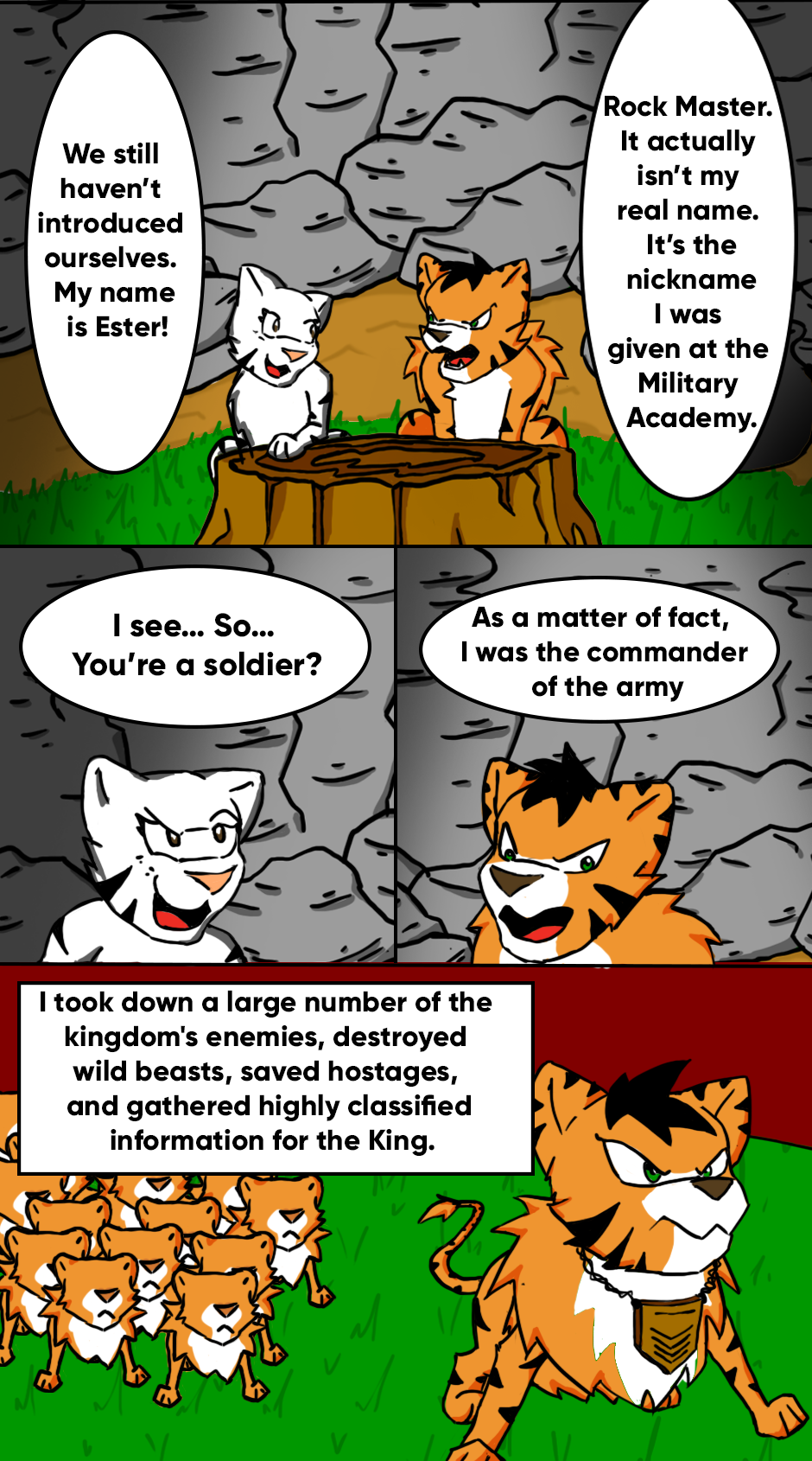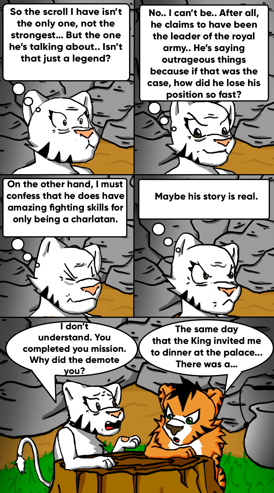This was the beginning of the adventure of two completely differently lions living in the same body. Rock Master's Mission would be from here on out to recover his lost honor, while trying to dominate the power of the scroll and the mysterious personality of Barbacat. Will he succeed?