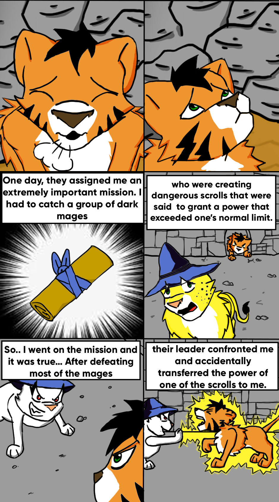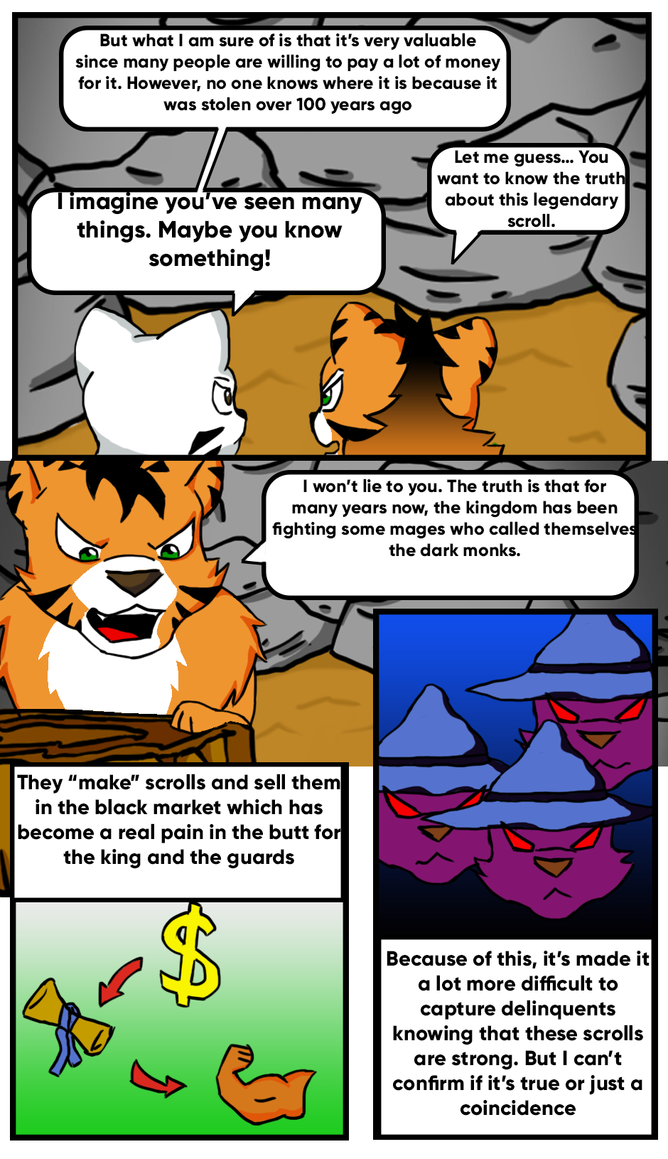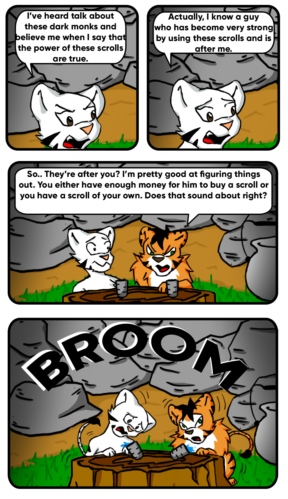 In a Kingdom of felines, Barbacat was born. This lion, grew in a select clan of the White Monks, a group that worked with martial arts and magic to make spells with scrolls.