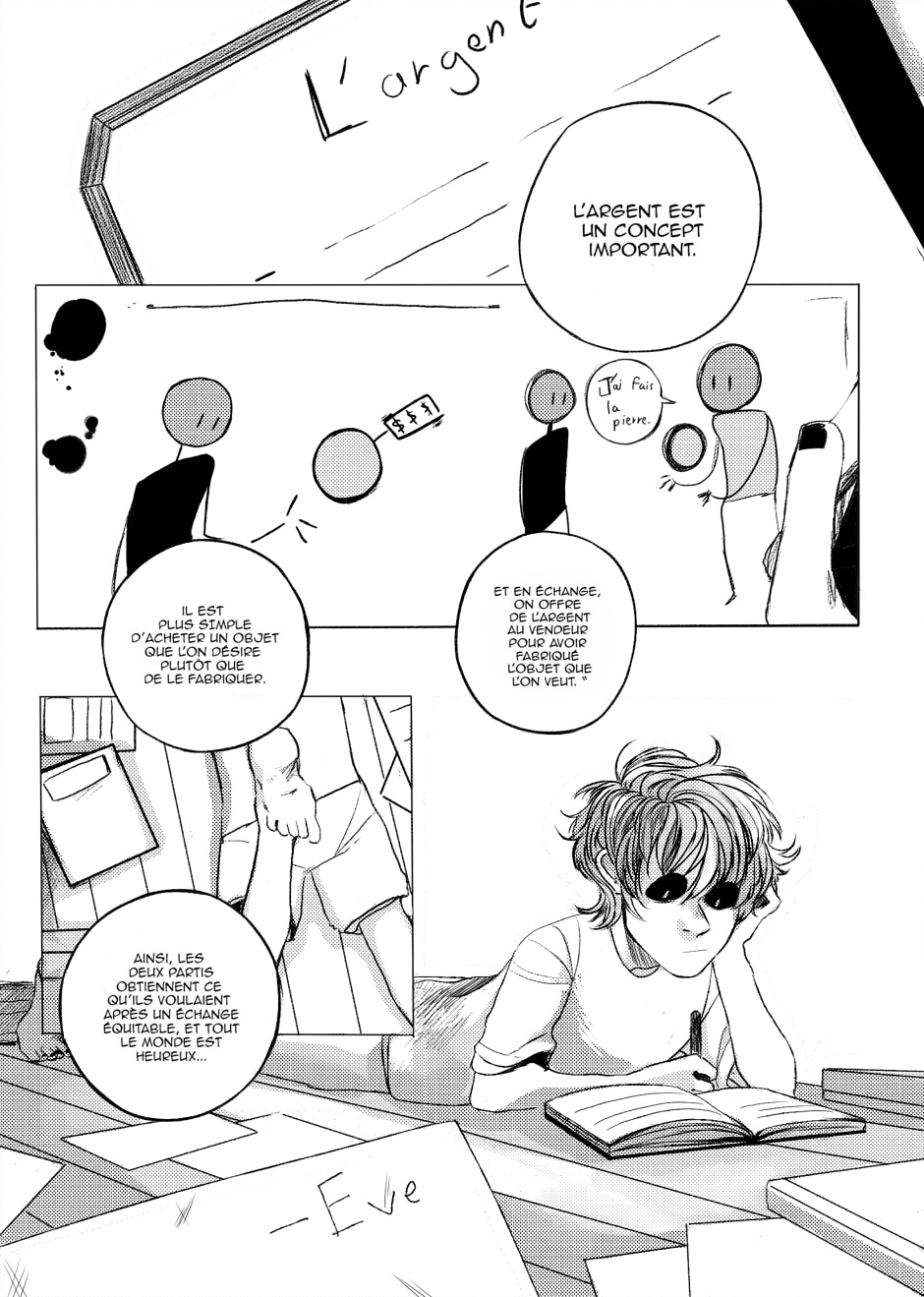 Ayant récemment appris le principe d'un échange de biens, il se lance dans une petite expérience pour voir si il peut se débrouiller seul.