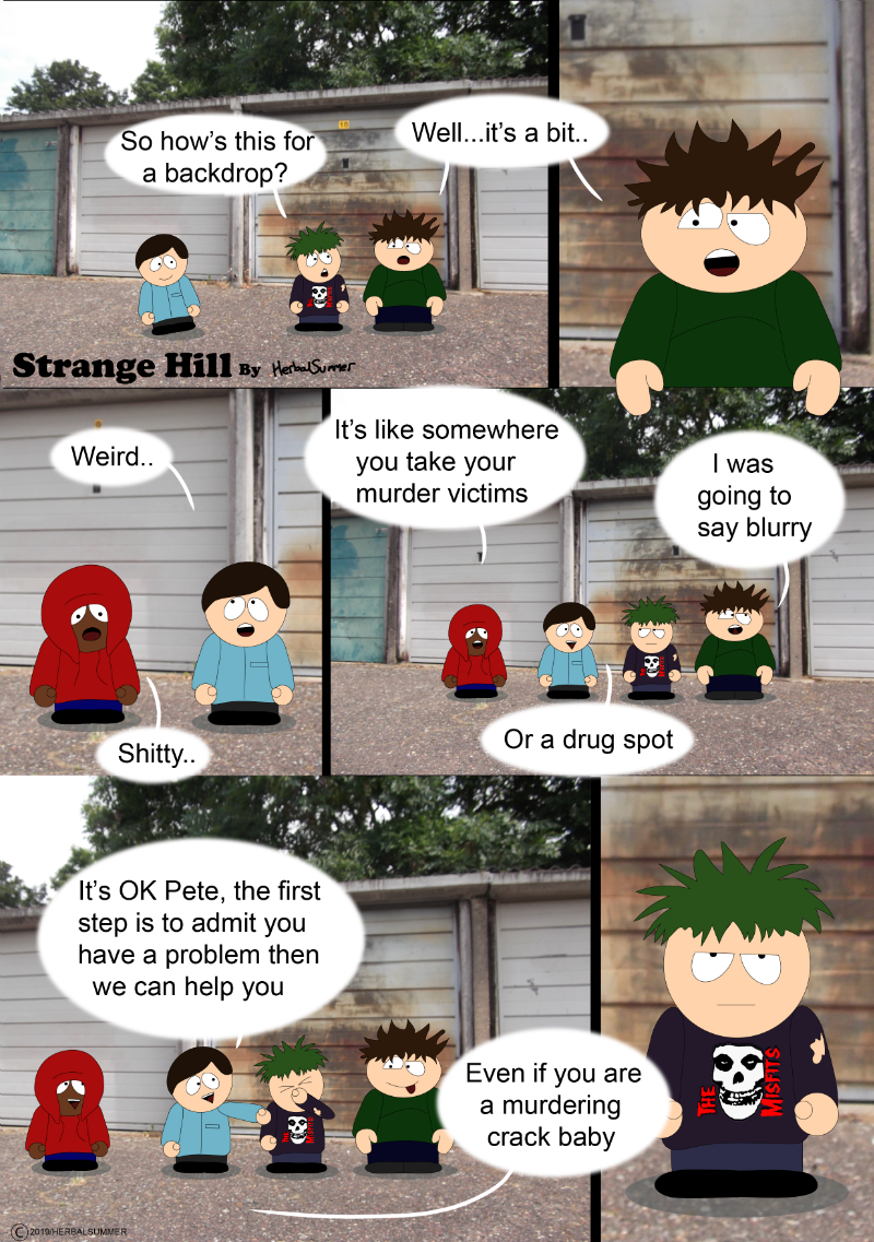 Follow the adventures of the folks from a town called Strange Hill, Inspired by South Park and set in the uk and currently going through Phase 1 where I'm trying out the character dynamic, doing a few stories, seeing how it goes, and eventually working towards a break point where i will then change anything that needs changing, and tweek the art work to look nicer.