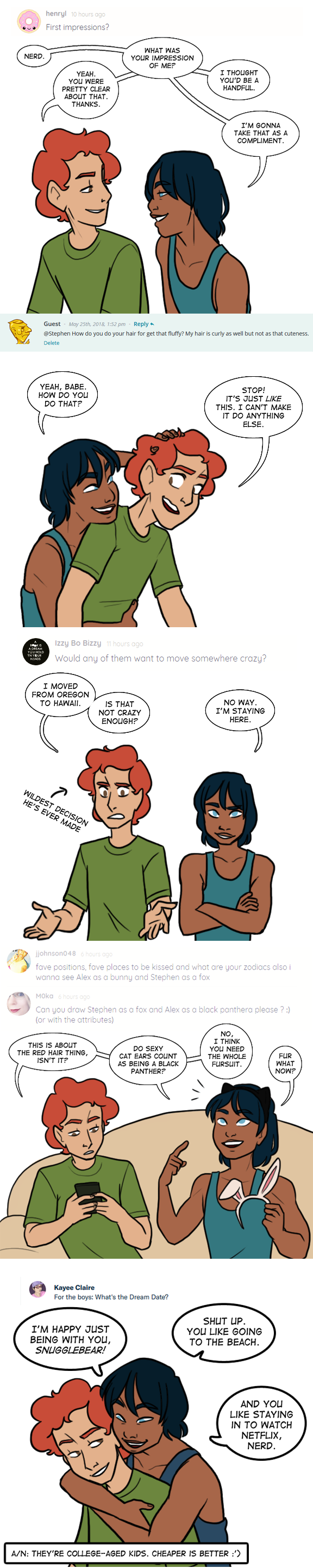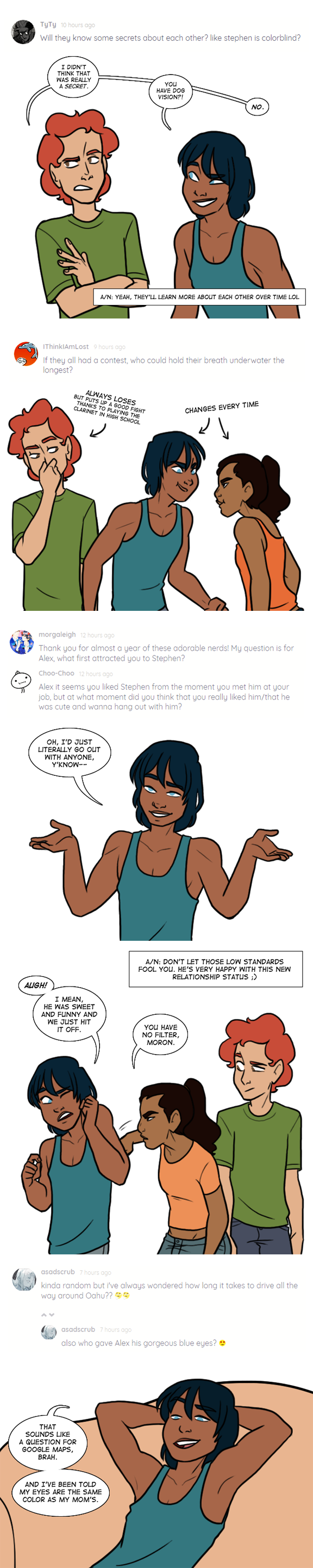 I'm also assembling screenshots of the questions I answered in the comments of the original Q&A post, since I didn't have time to draw a response for all of them.