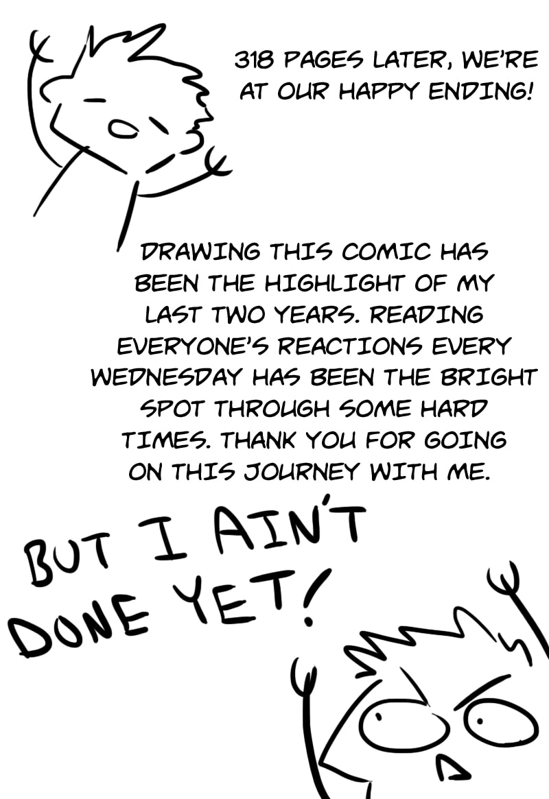 THAT'S IT. There's a lot I want to say but there just isn't space. Mostly I just hope everyone is doing fine out there, and I'm grateful to those who kept me company the last 2 years! It's been the highlight of my life and given me something to look forward to every week, and I appreciate everyone who's participated. Stay safe and stick around for the short comic I'll be posting here starting next week.