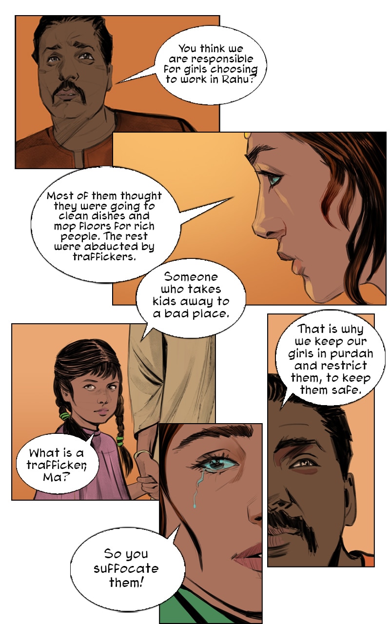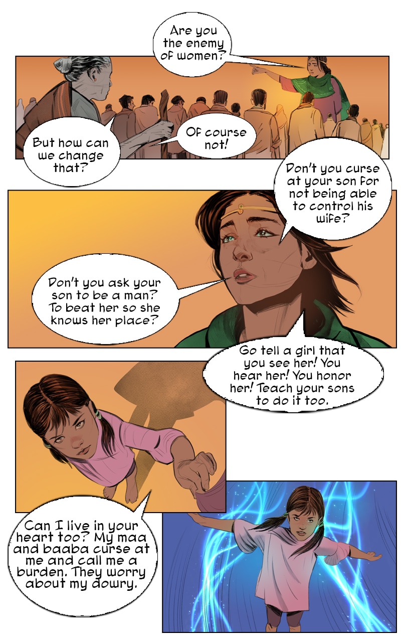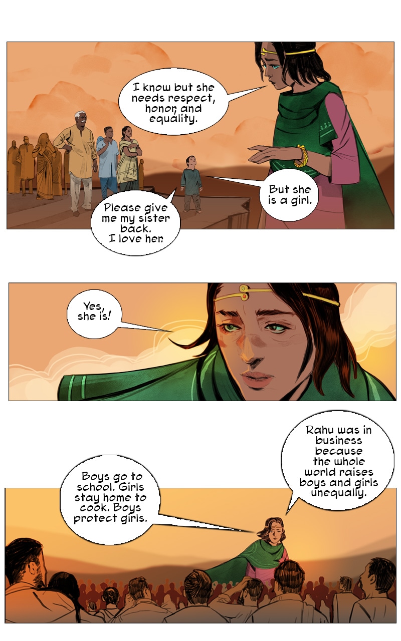 Priya continues her adventures with her flying tiger, Sahas. She returns home and discovers all the young women have disappeared in her rural village including her sister, Laxmi. She learns they were taken to an underground brothel city called Rahu, which is ruled by a demon who gets his power through fear and entrapment of women. "A woman vanquishes her fears and dismisses the ridicule, speaking out as a survivor and becoming an inspiration to thousands of women in India who have faced the same ordeal — a modern-day female superhero. " – VICE News