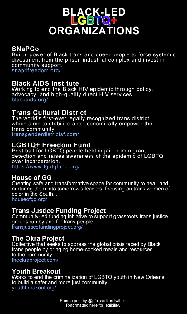Additionally, here are the quick links to the awesome Black-Led LGBTQ+ Organizations: