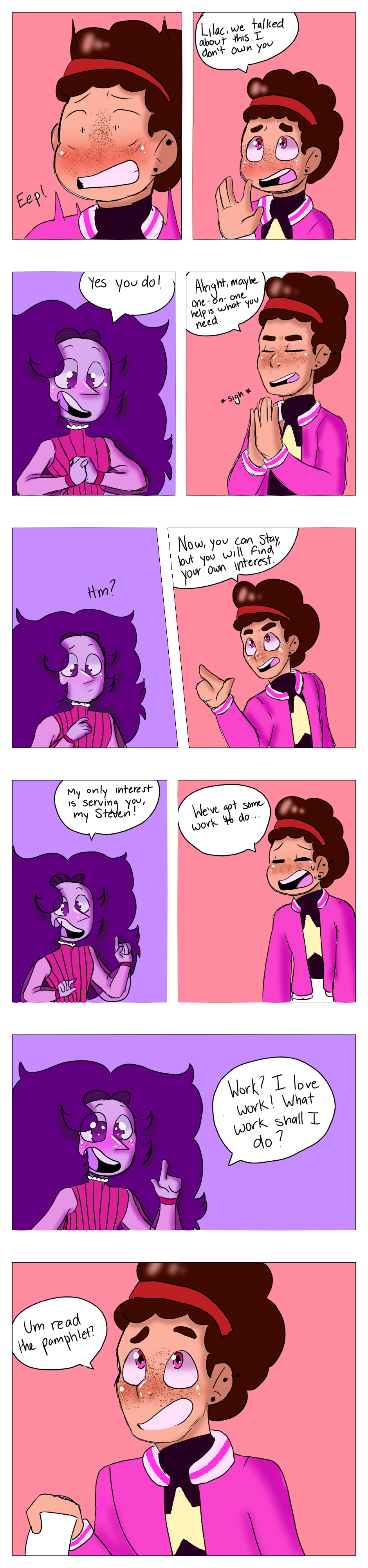 i bet she will not aknowledge any of what the pamplet says and be obvlious to it this seems like a job for pearl,yellow pearl,blue pearl,pink pearl and any other pearl to maybe help because it may take a pearl to get through a pearl matter a fact why was this pearl poofed to begin with