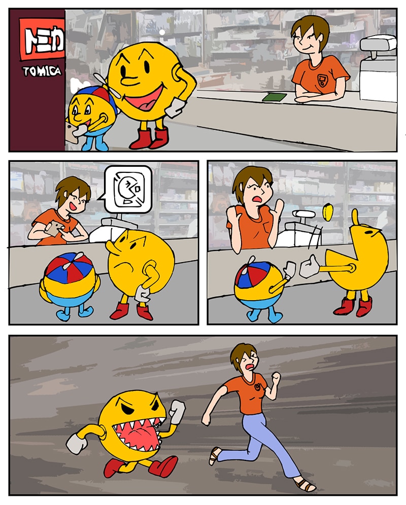 In Japan, PacMan is shown on some items and products from Tomica as a sign that the product contains small parts.