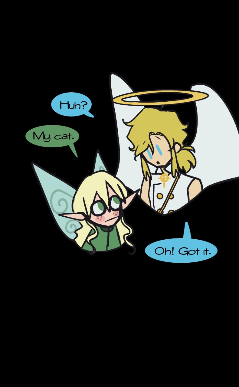 When Luka is sent down to the Ivory Wood, he's happy to serve as a guardian angel to a settlement of fairies. He's allowed to live a normal life with a security night shift, the food is delicious, and the kids find him to be of great entertainment.
