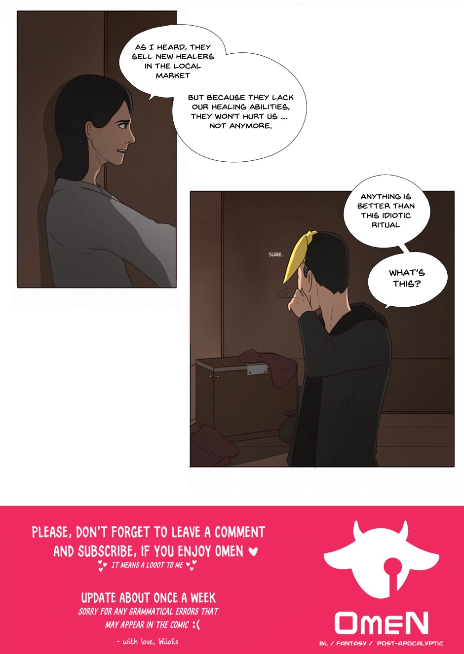 After gods destroyed this world, they left gems from their bodies that gave those who survived huge powers. After many years, the survivors split into two main groups - healers and fighters. In a world where anybody can become anything, no one can trust anyone, except those who are bonded together, depending on each other for their lives.