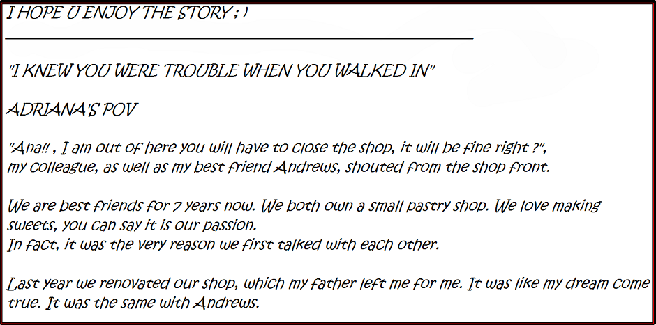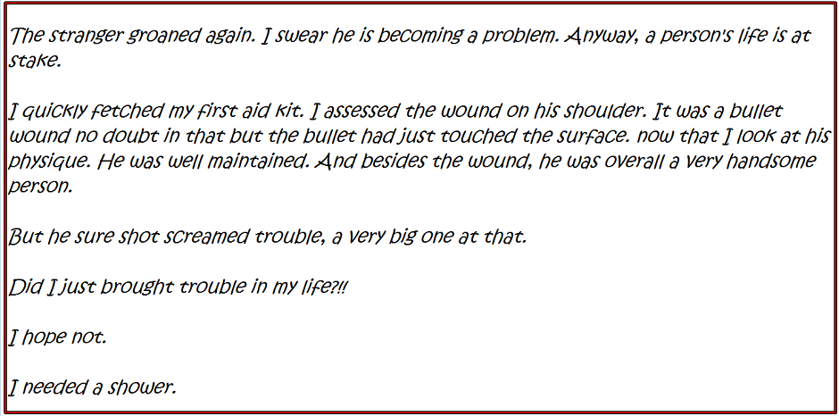 An ordinary woman with an obsession for sweets never knew what she was bringing herself when she helped an injured man that night. In spite of the warning bells ringing in her head, she invited the devil in her life.