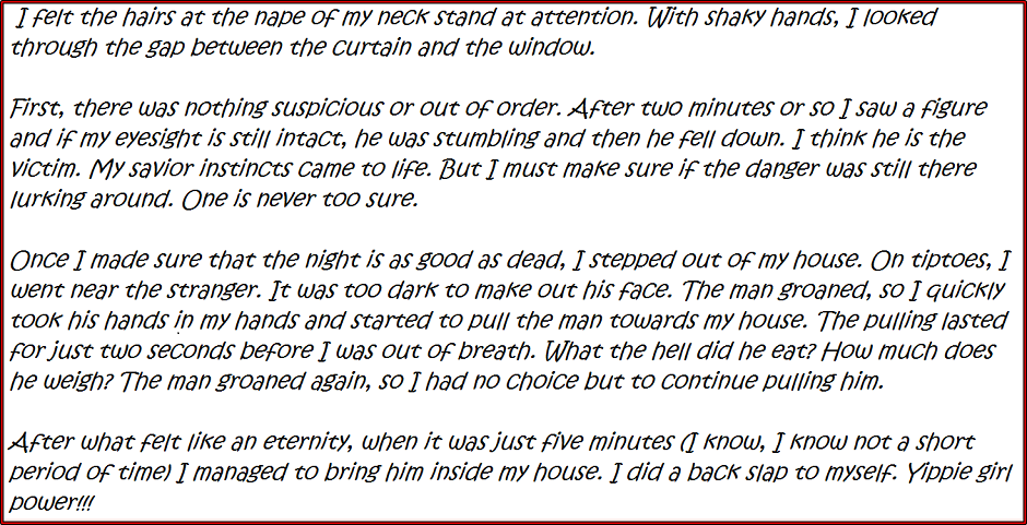 I came with a loud cry clutching those strong shoulders for dear life.