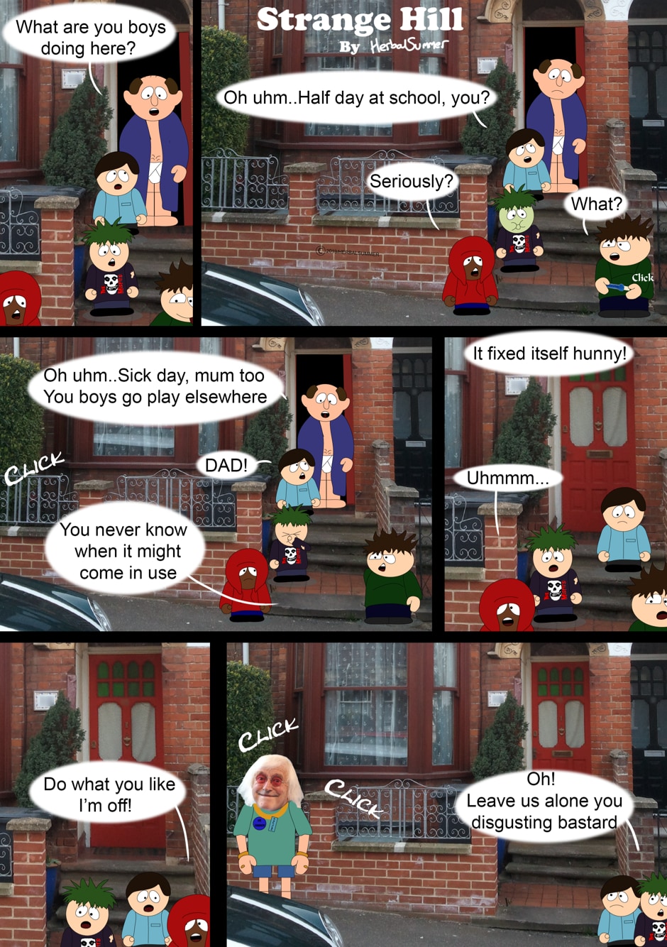 Follow the adventures of the folks from a town called Strange Hill, Inspired by South Park and set in the uk and currently going through Phase 1 where I'm trying out the character dynamic, doing a few stories, seeing how it goes, and eventually working towards a break point where i will then change anything that needs changing, and tweek the art work to look nicer.