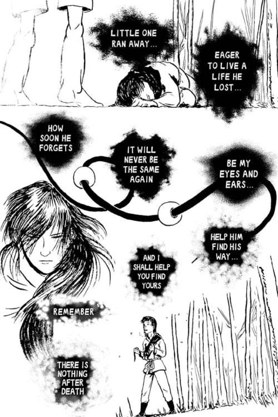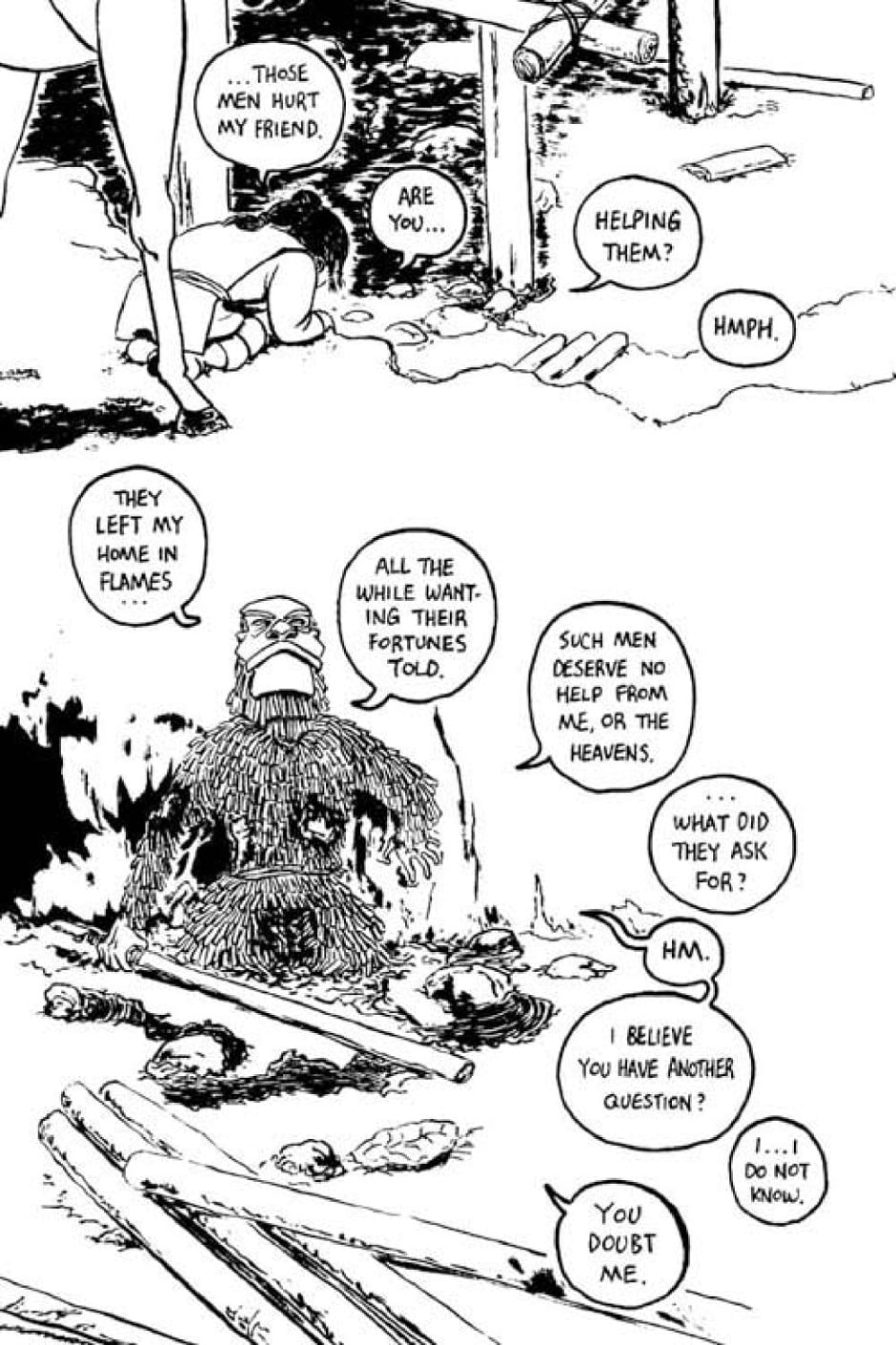* (page 106) That oracle bone script spoken by Von is invented. If I remember correctly it's meant to refer to the Shaman (the masked person).