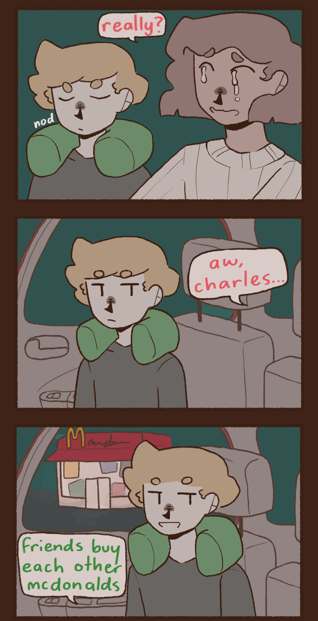 Ramen and Olivia are roommates in New City (i didn't forget york that's just what its called </3). They're two dumb motherfuckers but somehow Ramen gets good grades in university and Olivia always pays the rent on time. They basically only have each other, until two MORE dumb motherfuckers come along. Percy, a dumb little baby with no life experience, and Charles, Olivia's childhood friend and wannabe emo kid that has way too much time on his hands. they do funny stuff please read my comic