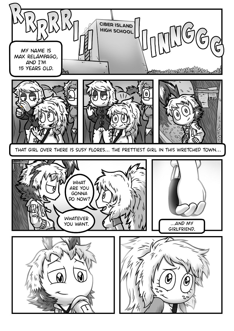 Max Comix tells the life of Max Relámpago, and the other inhabitants of Ciber Island, a small island in the southeast of Argentina that does not appear on the maps. It's your typical story of teenagers with strange hair and their daily adventures.