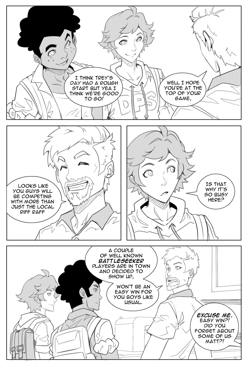 To cheer him up, Zac urges Trey to participate in a "Battleseeker" tournament taking place at a local gaming cafe, Save Point. They make some new friends along the way!