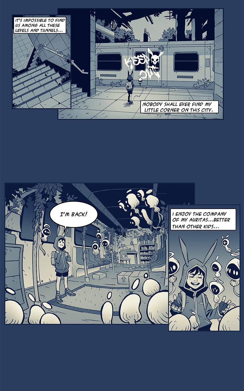 Paloma is a girl looking for her estranged mother, in a city where all adults have fallen asleep. To reach her goal, she will join forces with Lechuza, a child born from a flower, and Zorzal, an abandoned cyber-soldier. Together, they will travel to the Heart of the City, to recover what was once lost.