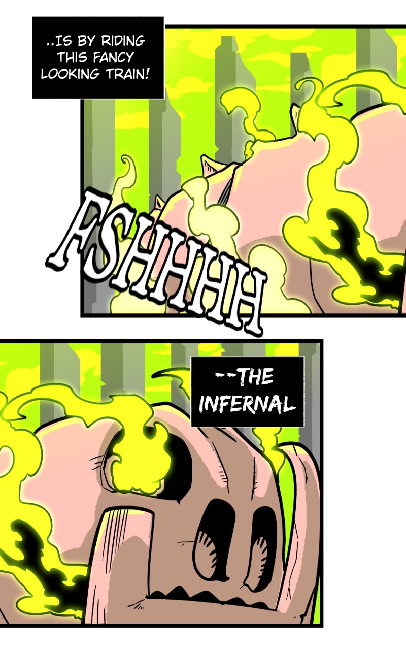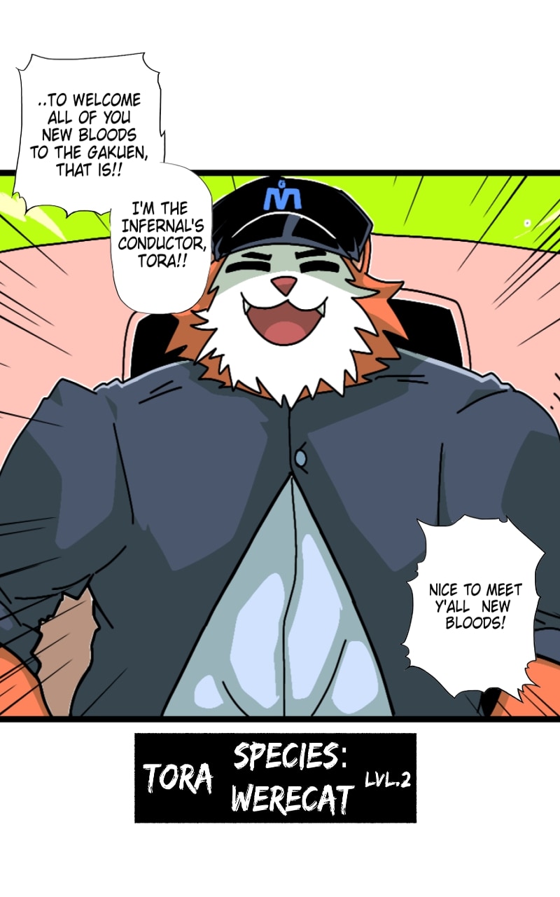 The only way to get into Amontropolis (and by extension, Makai Gakuen) is by riding on the ancient ghost train; Infernal. Once new students reached the entrance of Amontropolis, they will be greeted by Tora, the Ghost Train's conductor!