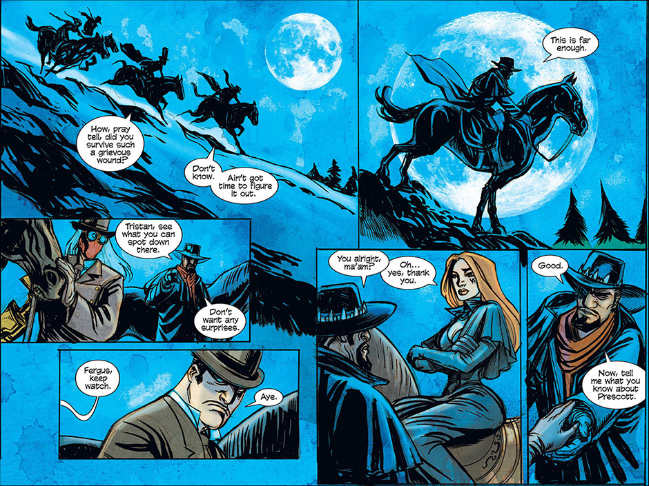 Winner of the Harvey Award for Best Online Series, HIGH MOON begins with a gruff bounty hunter, Macgregor, investigating strange happenings in the dusty town of Blest, Texas. While Macgregor uncovers the town's dark secrets, he tries desperately to keep his own hidden. At sundown, there'll be a showdown... at HIGH MOON!