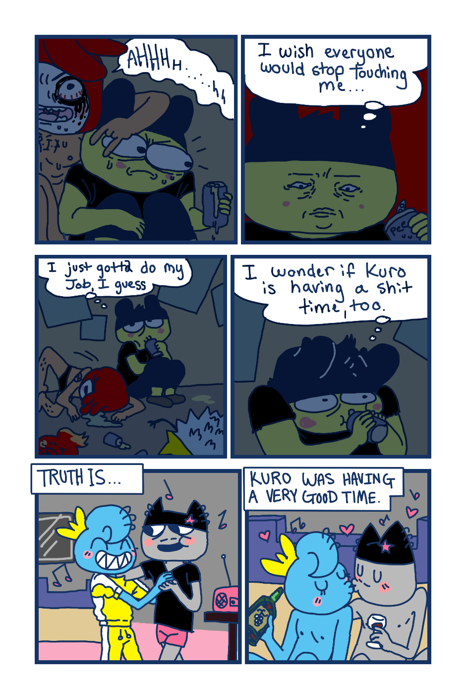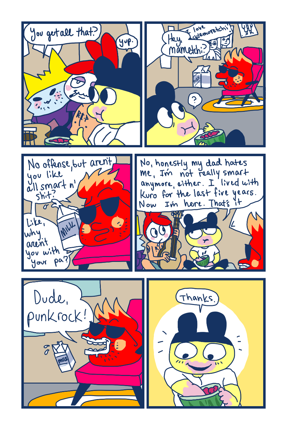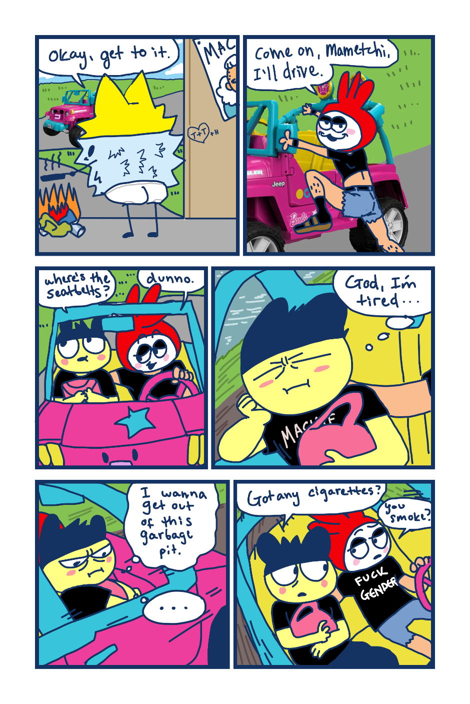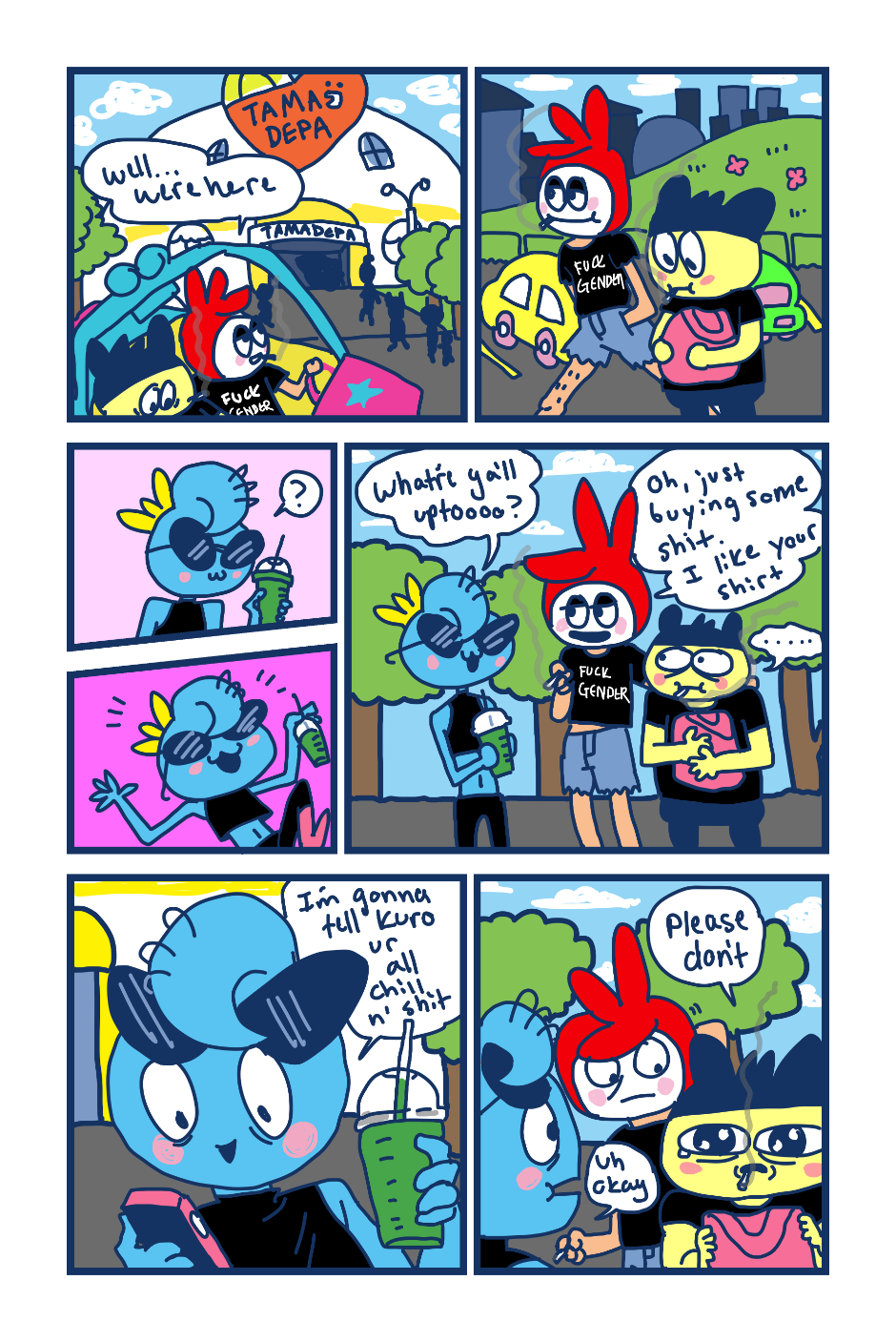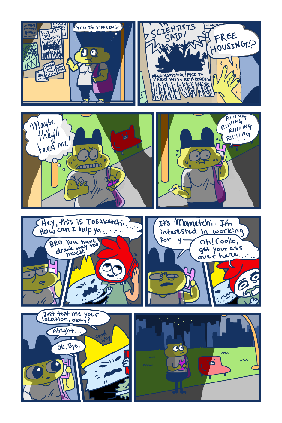 A fancomic/parody for the Tamagotchi series by Bandai. This story follows Mametchi and Kuromametchi 10 years after their prime time. Mametchi finds himself at a dead end in life. He sleeps on Kuromametchi's floor and has no job or money. Kuromametchi is tired of living with Mametchi, who is openly homophobic, but feels bad for his old friend. This story follows Mametchi as he tries to become a decent person and mend his broken relationships.