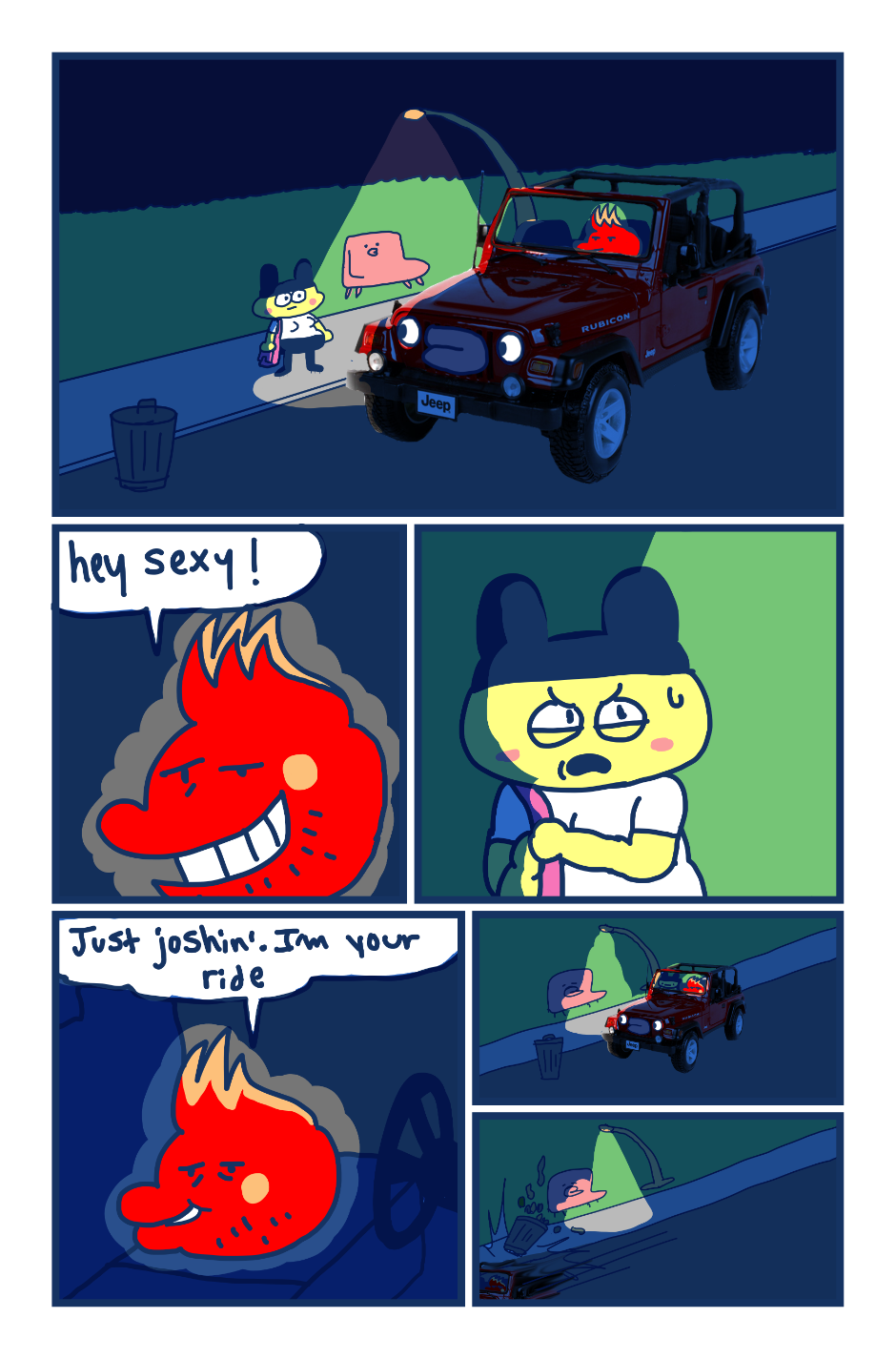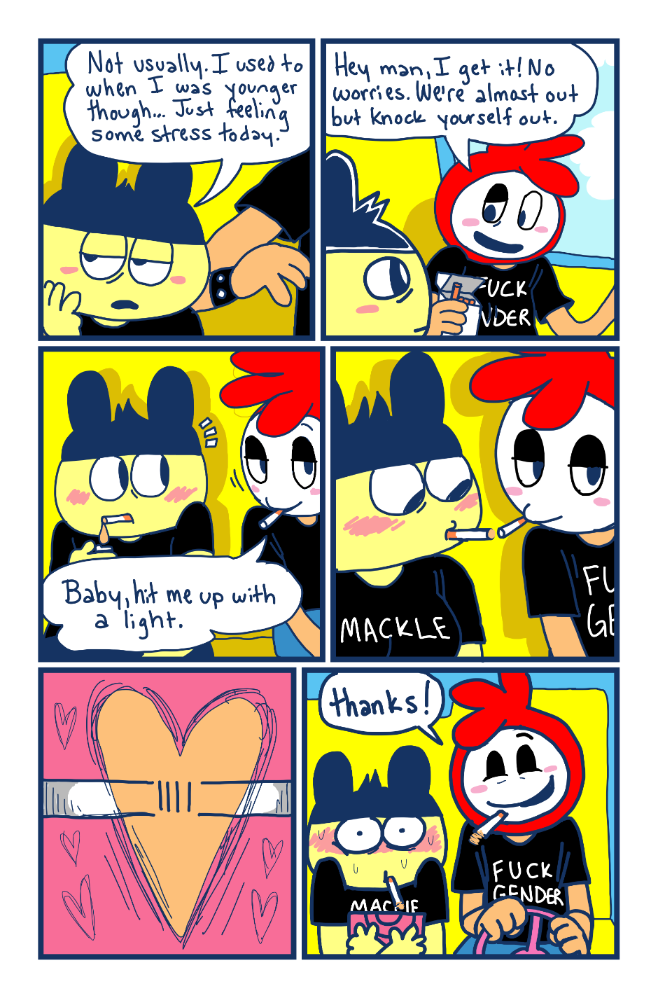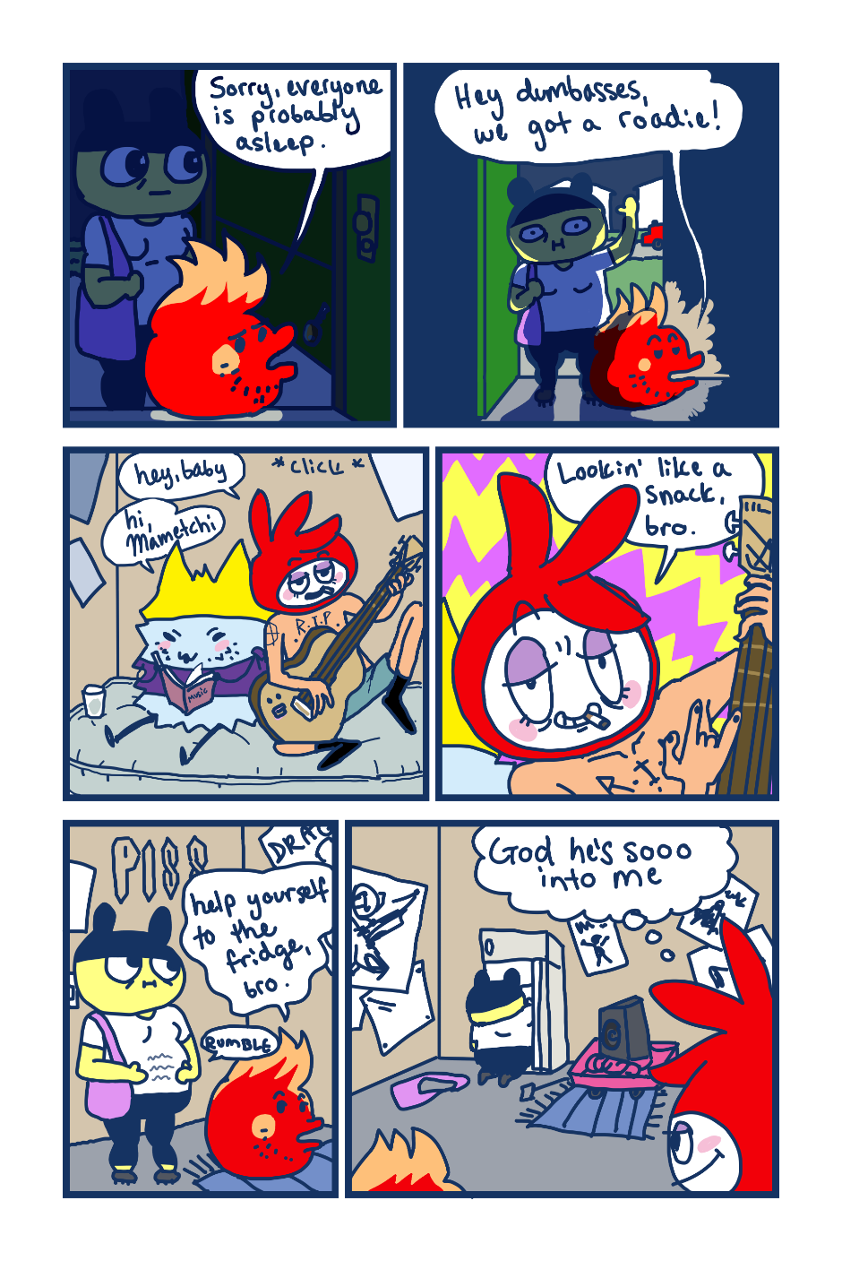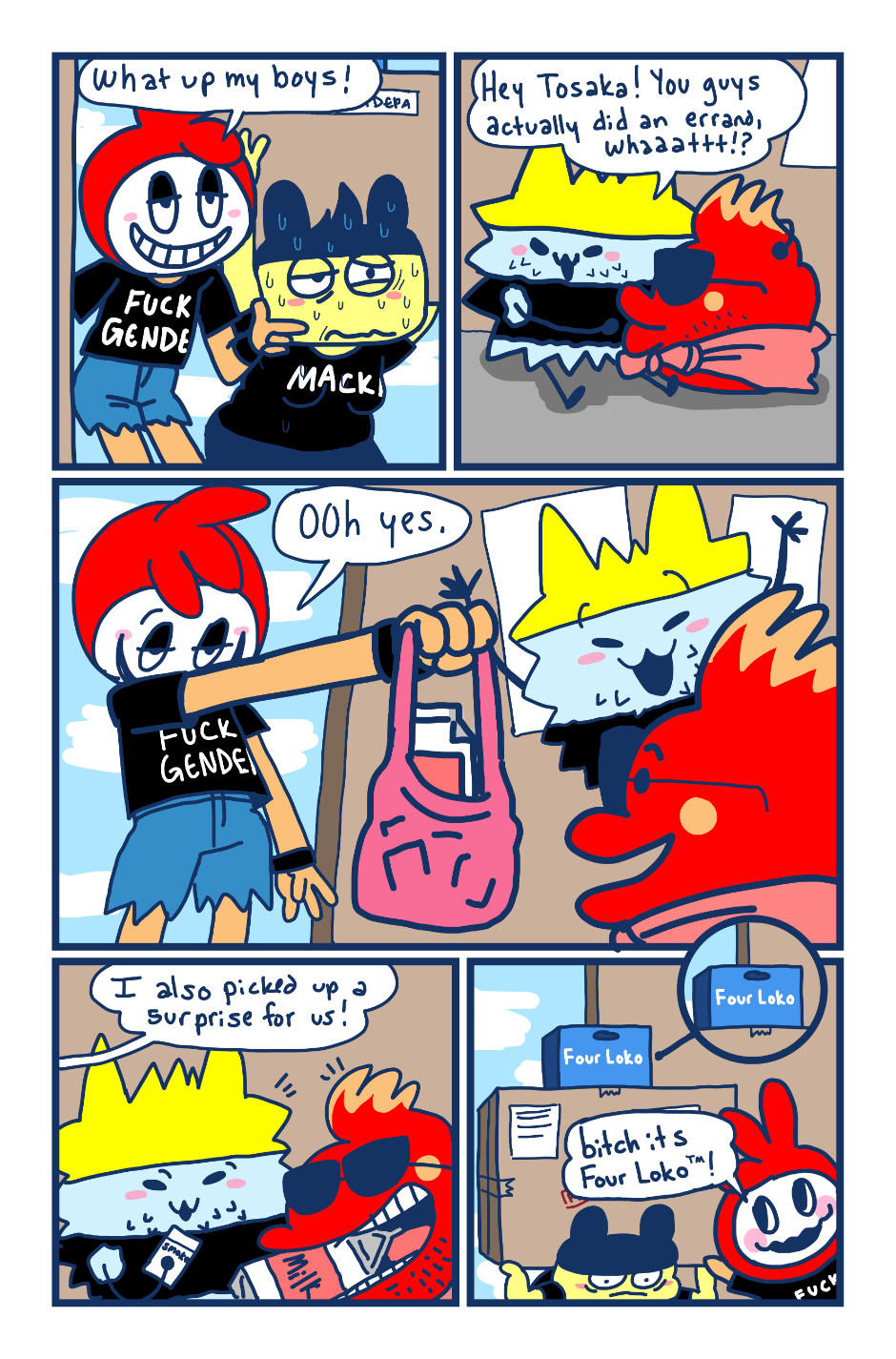 A fancomic/parody for the Tamagotchi series by Bandai. This story follows Mametchi and Kuromametchi 10 years after their prime time. Mametchi finds himself at a dead end in life. He sleeps on Kuromametchi's floor and has no job or money. Kuromametchi is tired of living with Mametchi, who is openly homophobic, but feels bad for his old friend. This story follows Mametchi as he tries to become a decent person and mend his broken relationships.