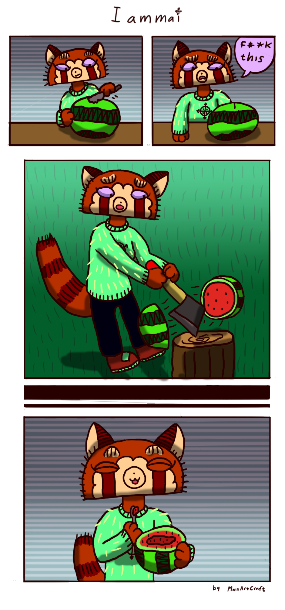 mai used axe on watermelon it was very effective.
