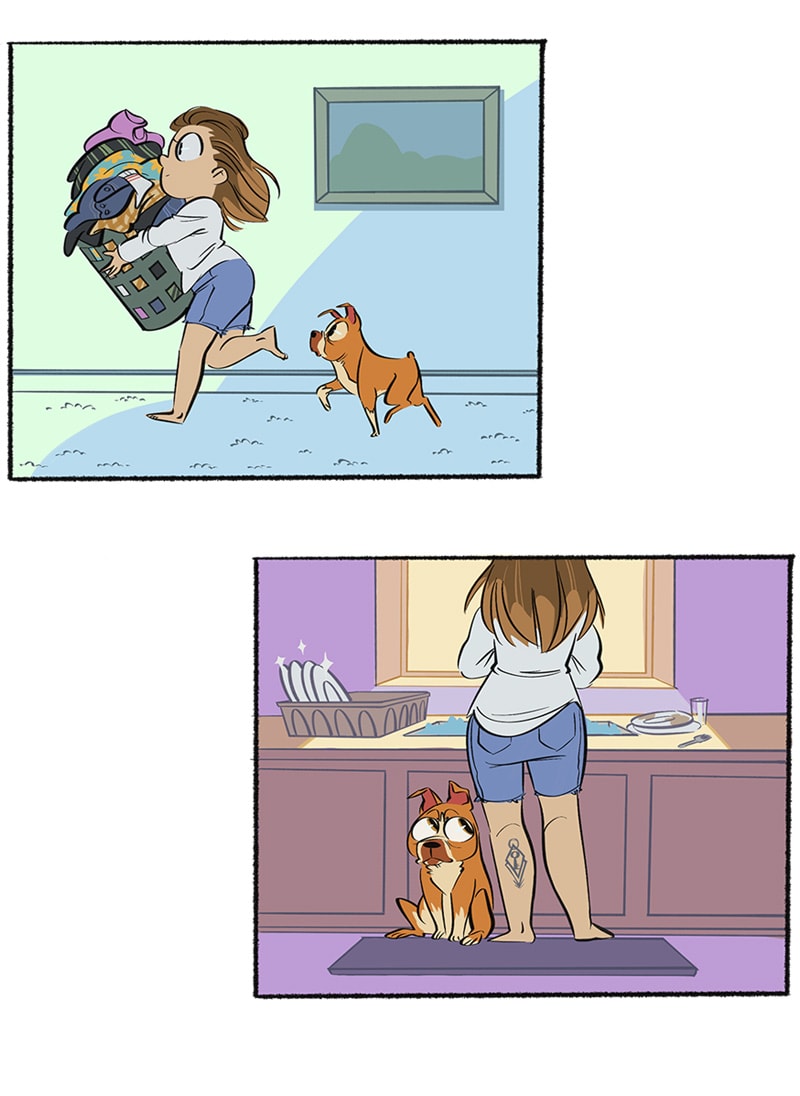 He is quite the little VELCRO dog, until I want to cuddle, then suddenly he has stuff to do :0
