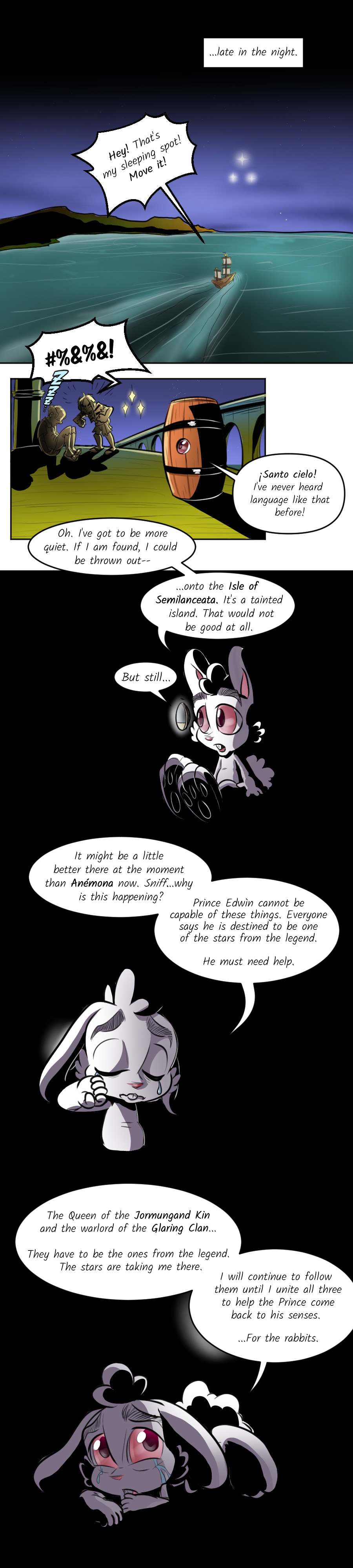 Bernabie the rabbit faithfully believes Prince Edwìn of Anémona, a kingdom of lucky rabbits, is a hero of a legendary myth that is said to one day bring peace to many lands. But the prince has gone through a troubling change with the help of the royal wizard, Sebastian bringing chaos to the once fairytale land! Bernabie escapes and seeks out two rival leaders, believing that they could also be the other heroes from the legend-- Fearless Queen Beatrixe of the Jormungand Kin and warlord, Blackie Chan of the Glaring Clan.