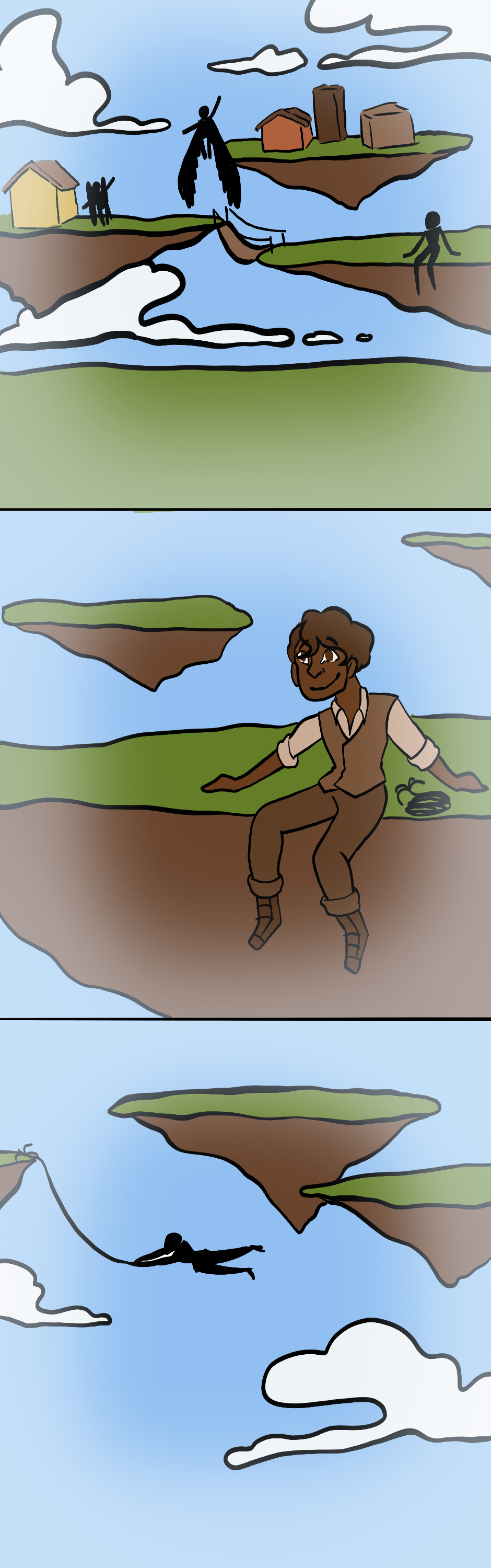 Ace was born in a world of fantasy, where people fly between idyllic islands on giant feathered wings. They were born without wings, but that was the only thing that saved them. Now they are traveling amongst the islands searching for anyone left.