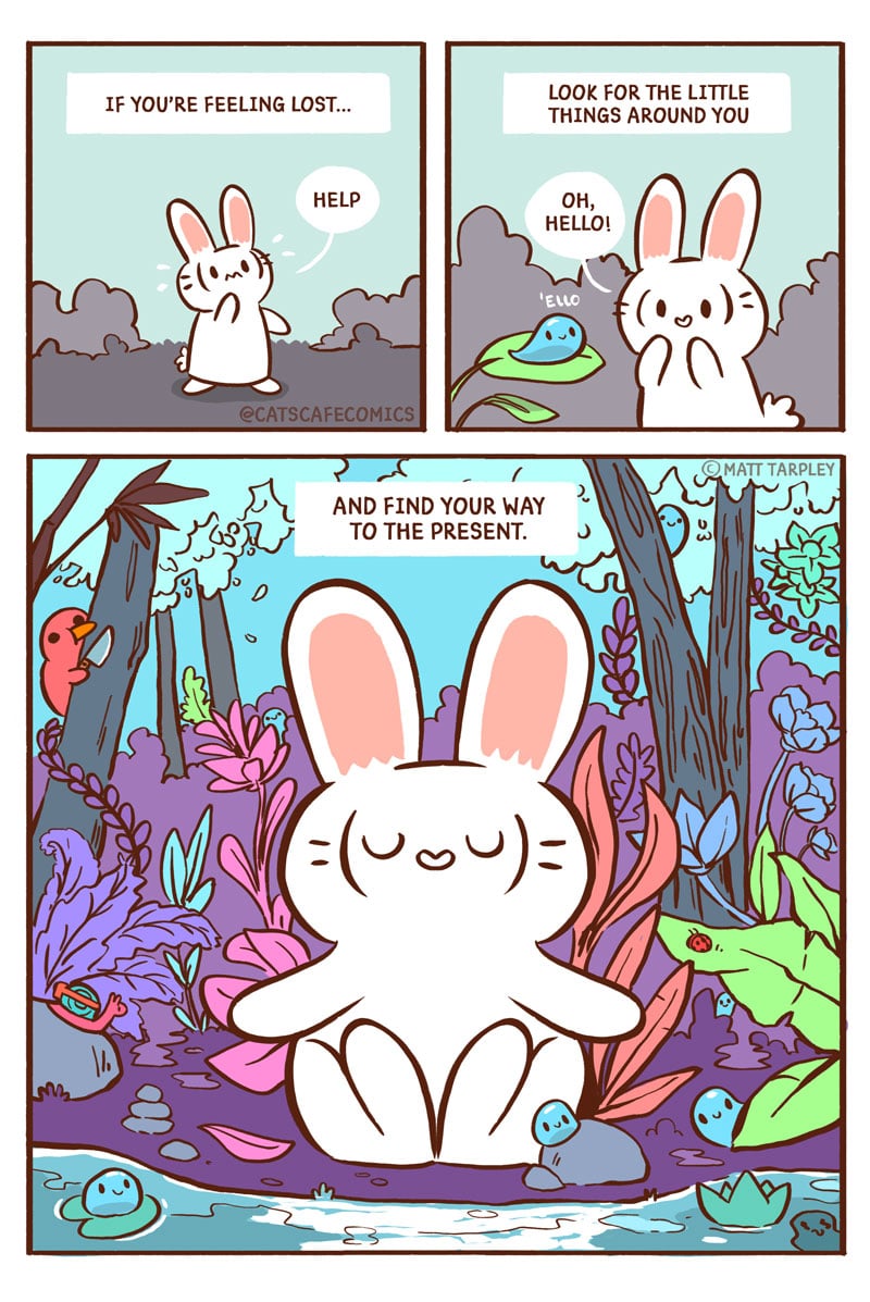 Cat's Cafe is a wholesome comic about the daily lives of cute animals! Join Cat, Penguin, and Rabbit as they go about their day and bring a smile to your face. Grab a cup of coffee (or tea!) and enjoy!