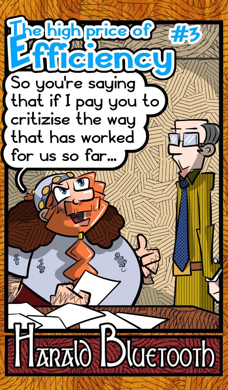 Harald hires a consultant to streamline the company...but a cow gets in the way!